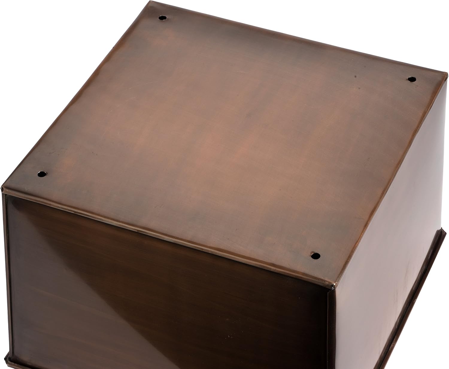 - Decorative Tall Outdoor Planter - Make an impression on your front porch or patio with this tall outdoor planter from H Potter. This durable and handcrafted planter stands an impressive 33 inches tall and is approximately 15 inches square at its widest and 10 inches square at the base. Fits many spaces - indoors or outdoors - with this dynamic size and design of this copper flower pot.