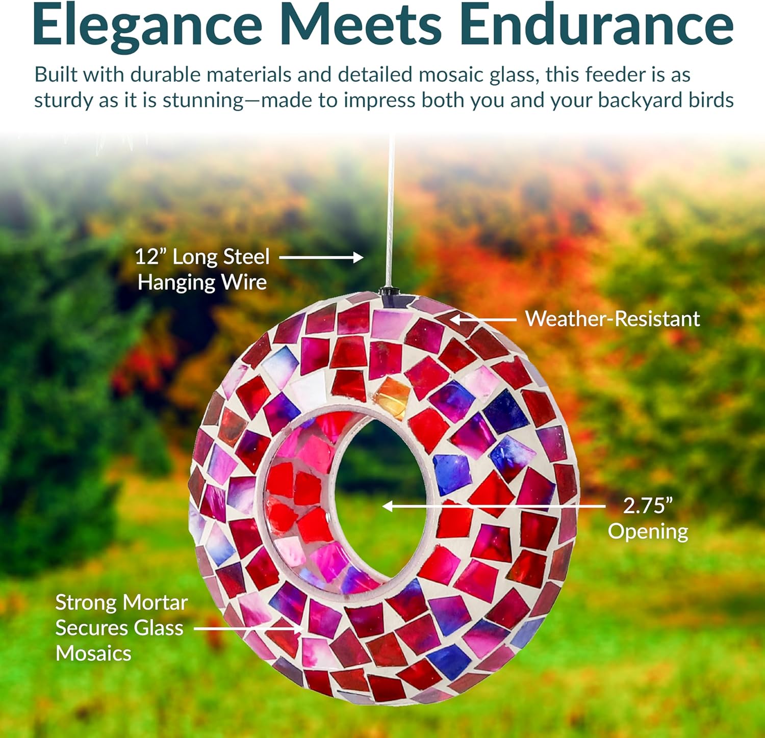 Sunnydaze 6-Inch Glass Mosaic Hanging Bird Feeder for Outdoors - Fly-Through Wild Bird Feeder - Crimson Mosaic