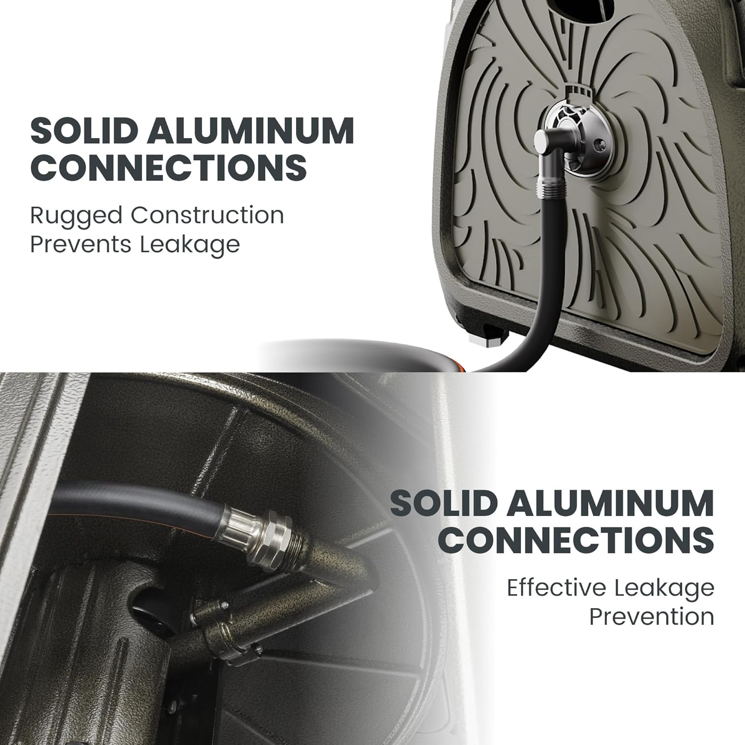 - STURDY & DURABLE - The strong metal housing with the rust-resistant coating is easy to take care of as well as lasts throughout the seasons. The Aluminum connections are guaranteed not to leak.