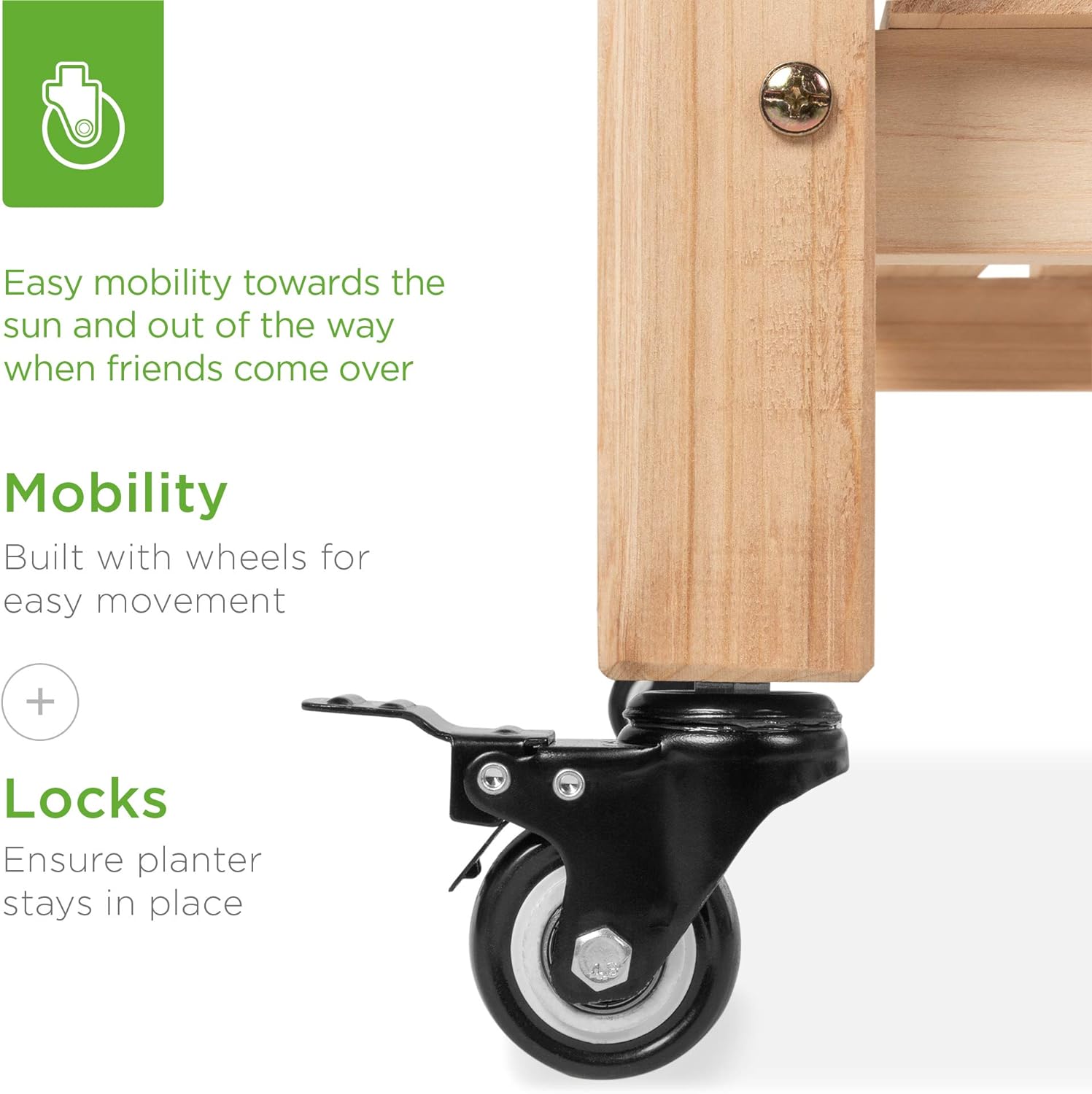 - EASY MOBILITY: Built with a set of locking wheels to move the planter from place to place and capture the right amounts of sun and shade