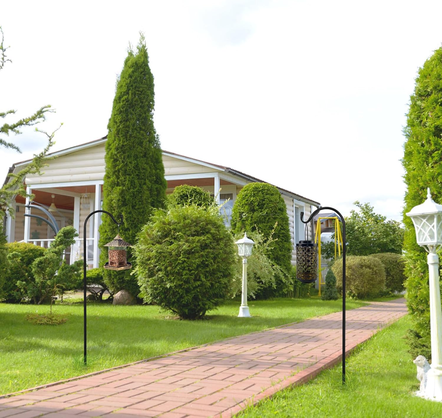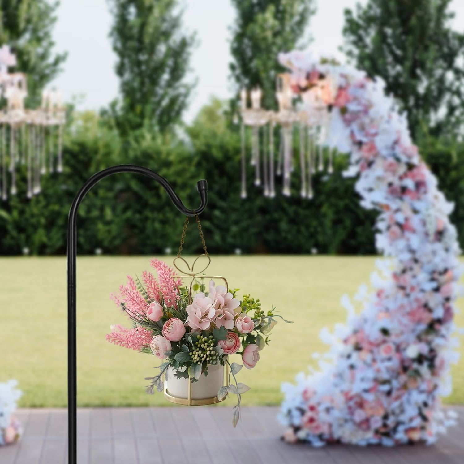 - Multiple applications of shepherd hooks: Garden shepherd's hooks are suitable for outdoor wedding aisles, and can also be used to hang flower pots, bird feeders, solar lights, lanterns, flower pots,decorations, flower balls, garden lights, glass bottles, holiday decorations, string lights, bird baths, plant racks and other garden decorations