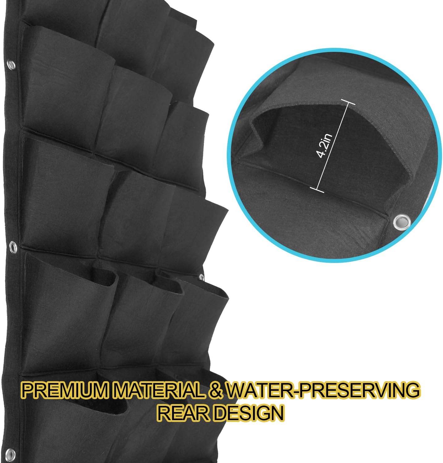 - PREMIUM MATERIAL & WATER-PRESERVING REAR DESIGN - The hanging garden growth bag is made of high-quality and environmentally friendly felt. Practically, this growing bag retain a moderate water level for perfect growing conditions for your plants, such as herbs, strawberries, flowers, vegetables and so on. The rear water-preserving layer of the growing bag effectively protects the wall without stains, and the leakproof design of the bottom does not make your floor dirty.