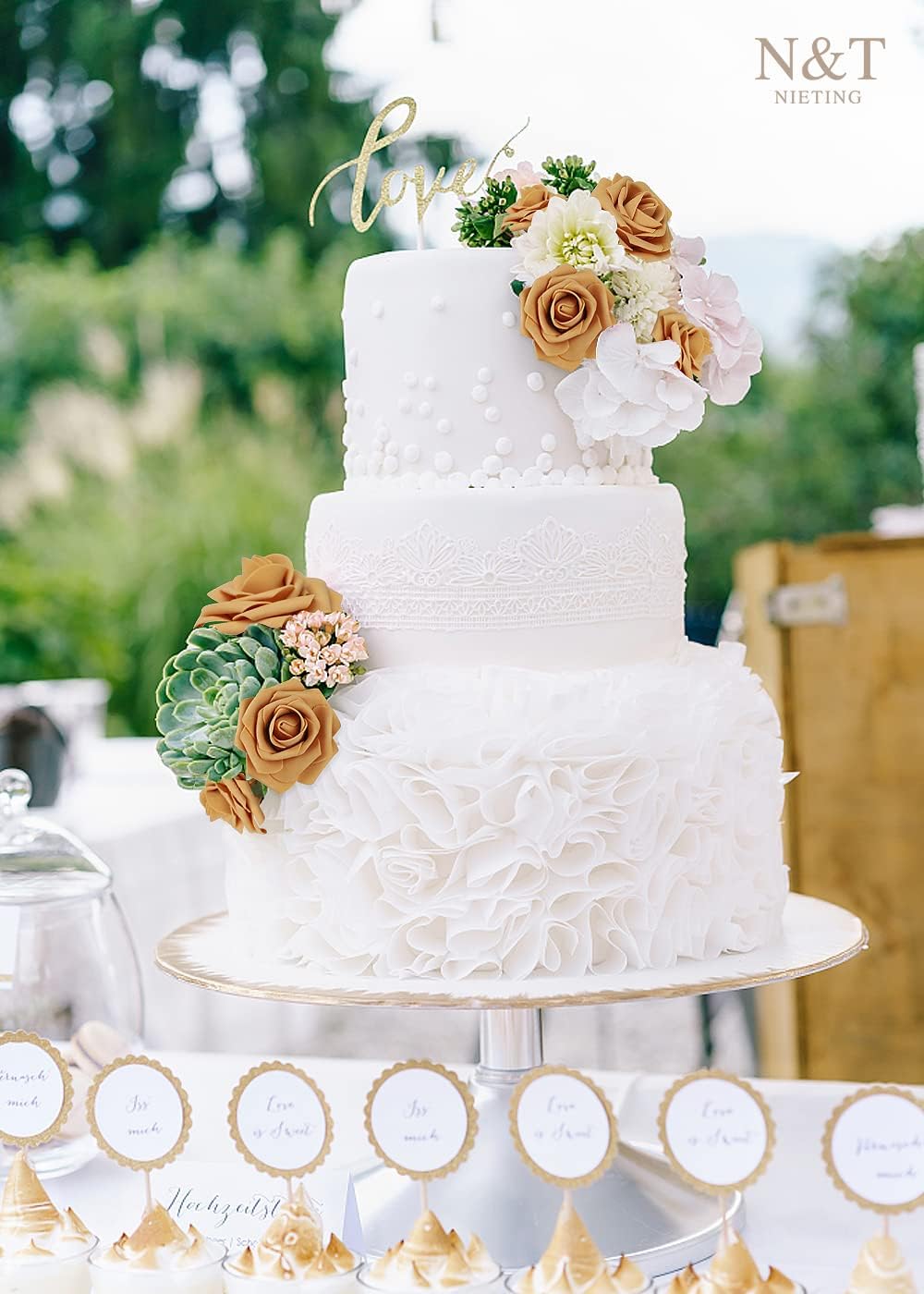 N&T NIETING Artificial Rose Flowers, 25pcs Fake Flowers Fall Yellow Rose DIY for Wedding Bridesmaid Bridal Bouquets Centerpieces Party Cake Decoration Home Display, Gold Yellow