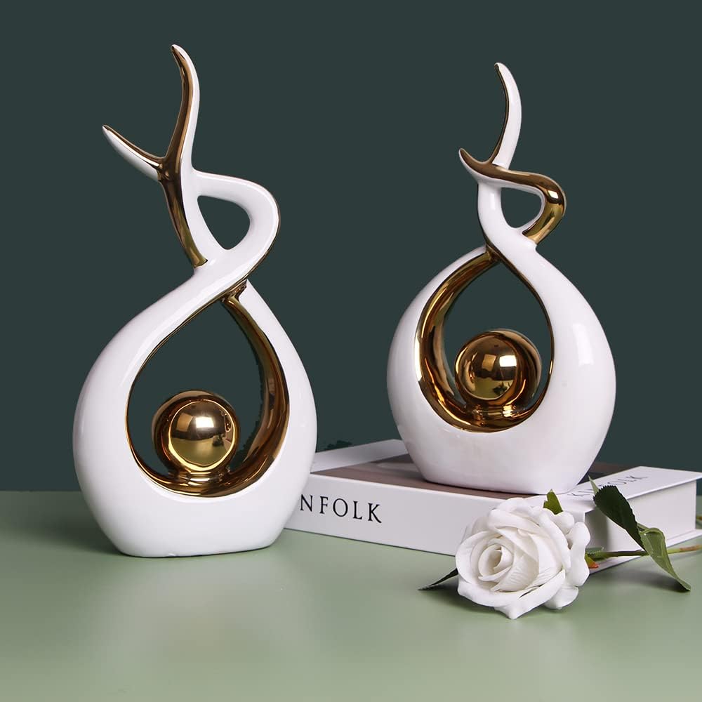 Norrclp Home Decor Modern Abstract Art Ceramic Statue Table Decorations for Dining Room Living Room Office Centerpiece (White and Gold, Large)