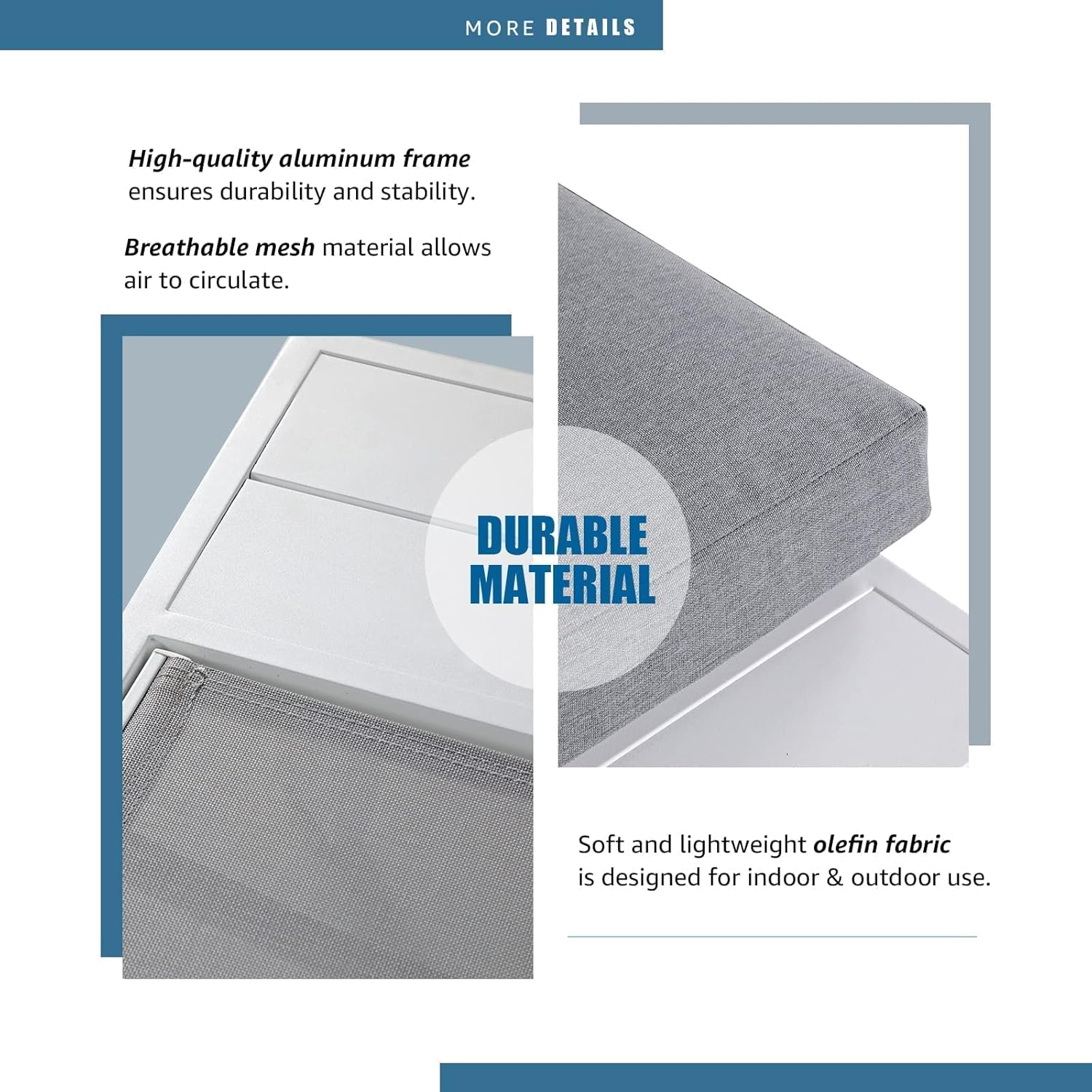- COMFORT UPGRADE - Padded cushions bring you strong support for better comfort, which covered with olefin fabric are removable and allow for machine washable. Fixable back cushion are designed to allow attaching to the aluminum frame against being blown away by the wind. Please note that these cushions are non-waterproof.