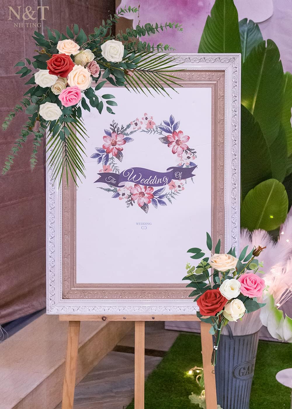 N&T NIETING Artificial Flowers 50pcs Real Touch Faux Flowers Bulk with Stems for DIY Wedding Bouquets Bridal Shower Centerpieces Floral Arrangements Party Valentine's Day Home Decorations(Series Red)