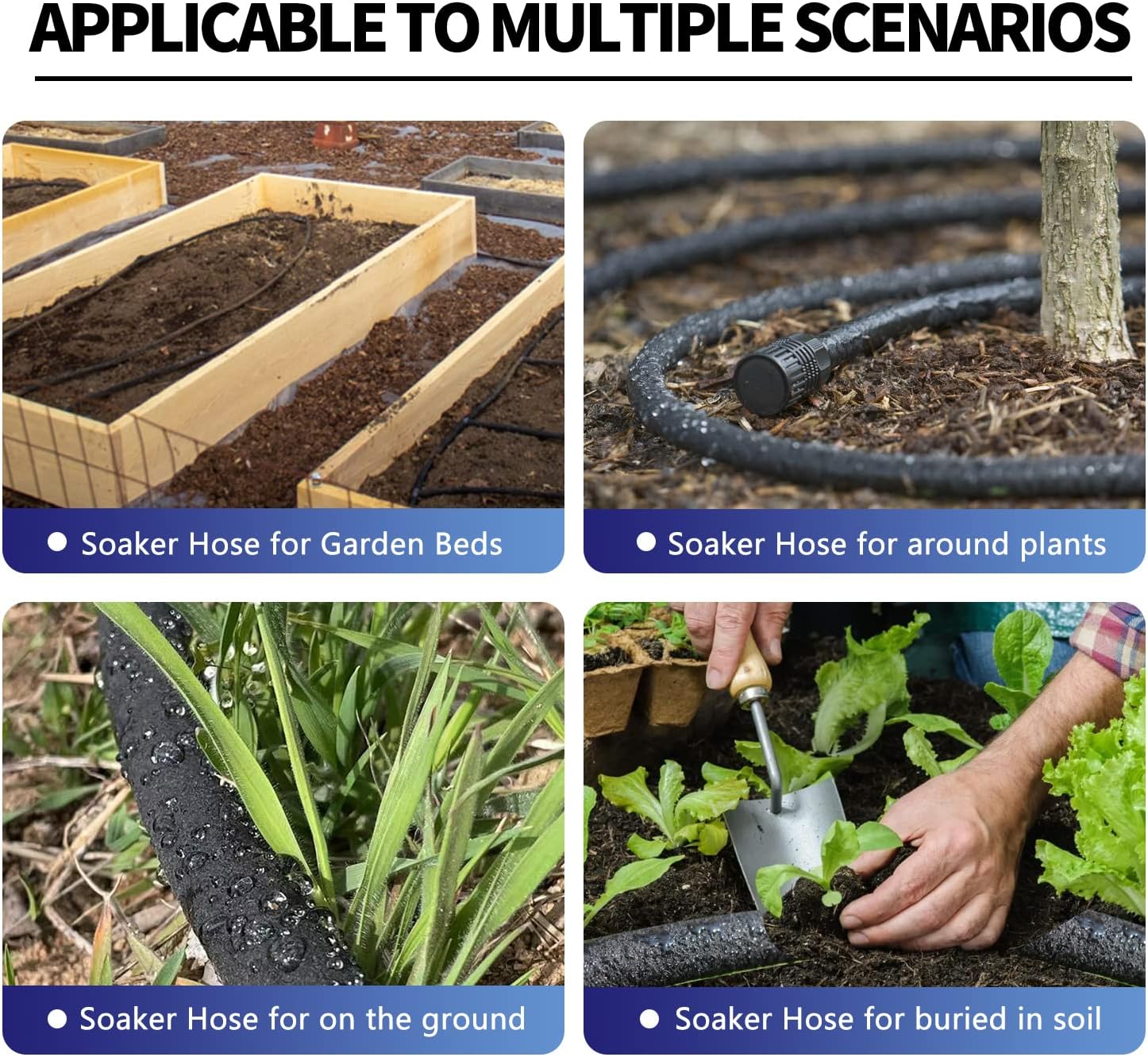 - New Material for Stability and Durability - The soaker hose have small pores all along their length and are closed on the end. The garden hose will evenly distribute water over the entire length of the hose because of the nature of its particular rubber material (The new premium material was upgraded with more durability). Upgraded material solves the problem of broken soaker hose largely.