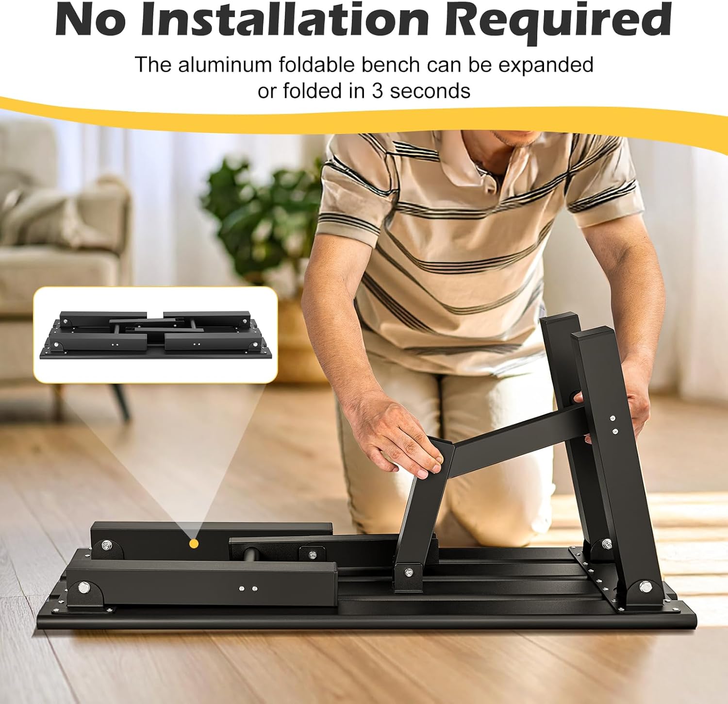 - Instant Setup in 3 Seconds: No assembly required. Enjoy immediate convenience! This aluminum small outdoor bench comes fully assembled and ready to use right out of the box. Simply unfold it and it's set up; fold it flat for compact storage. It’s the ultimate solution for quick, effortless seating.