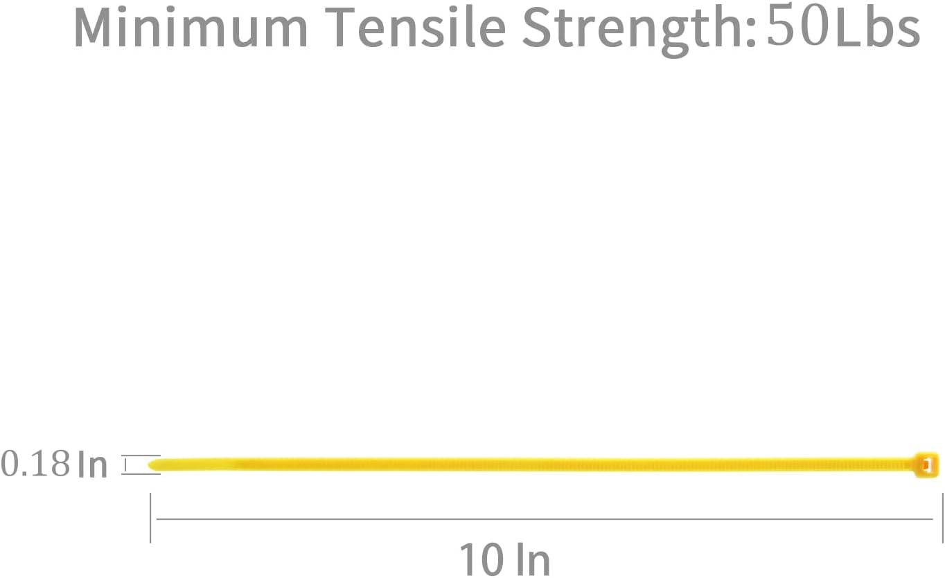 XINGO 100PCS Cable Zip Ties Heavy Duty, Premium Nylon Plastic Wire Ties with 50 Pounds Tensile Strength, Self-Locking Black Nylon Zip Ties for Indoor and Outdoor (10 inch, Yellow)