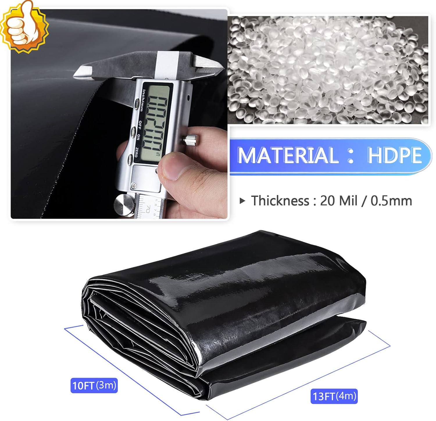 - [Safety Material] Koi Pond Liner is made of HDPE material, it has good softness, extensibility, 20 mil thickness liner is UV and puncture resistant, contains no plasticizers that can be used in outdoor ponds for a long time.