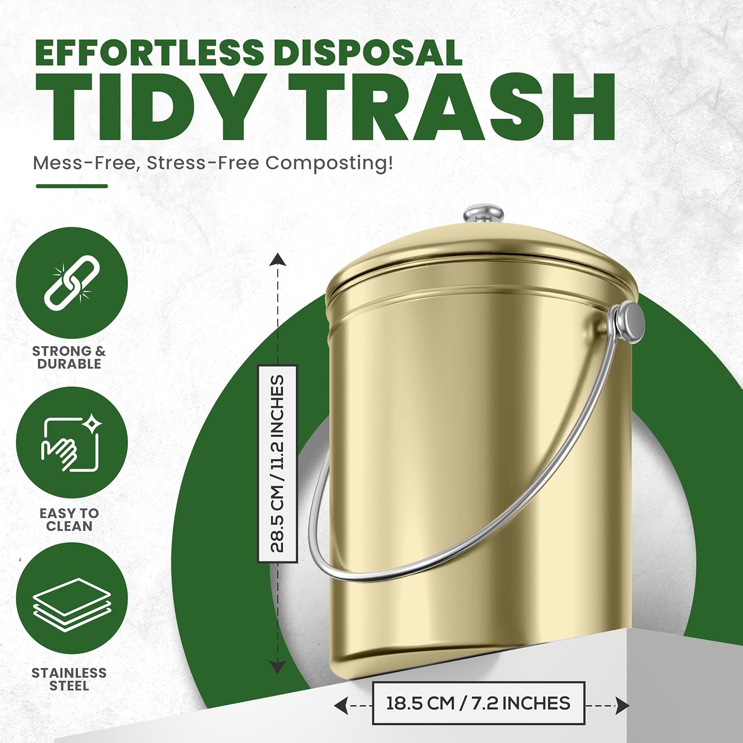 Utopia Kitchen Compost Bin for Kitchen Countertop - 1.3 Gallon Compost Bucket for Kitchen with Lid - Includes 1 Spare Charcoal Filter (Gold)