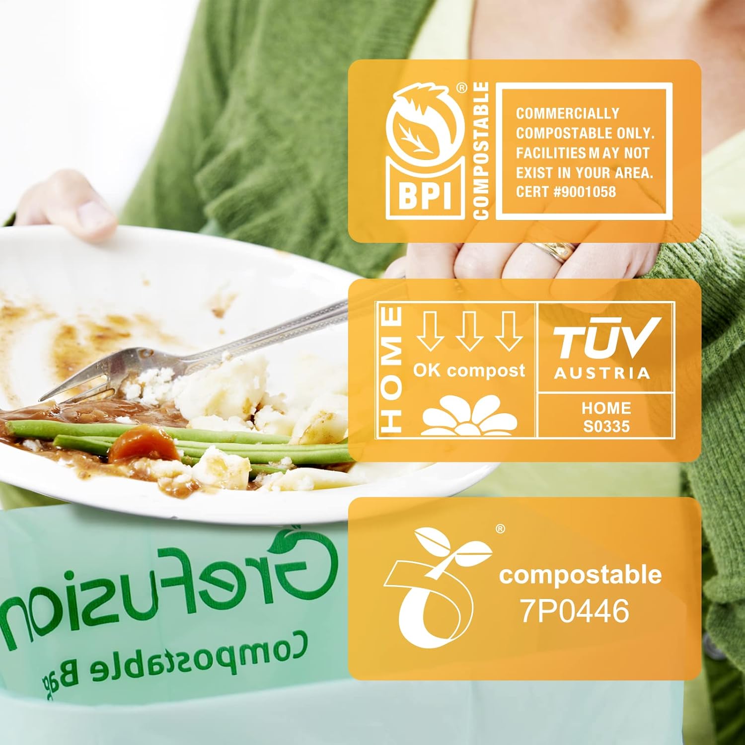 • 【2.6 GALLON COMPOSTABLE BAGS&UPDATE THICKER BOTTOM 】Even liquids gather at the thicker bottom but with no tear . The kitchen trash bags features of sturdy same as regular plastic bags but more ecofriendly than it.If you're tired of cleaning your compost bin every day or using flimsy trash can kitchen bags causing spilling out, Now the Surper Strength GreFusion garbage bags is a great life saver for your Health & Household cleaning working.