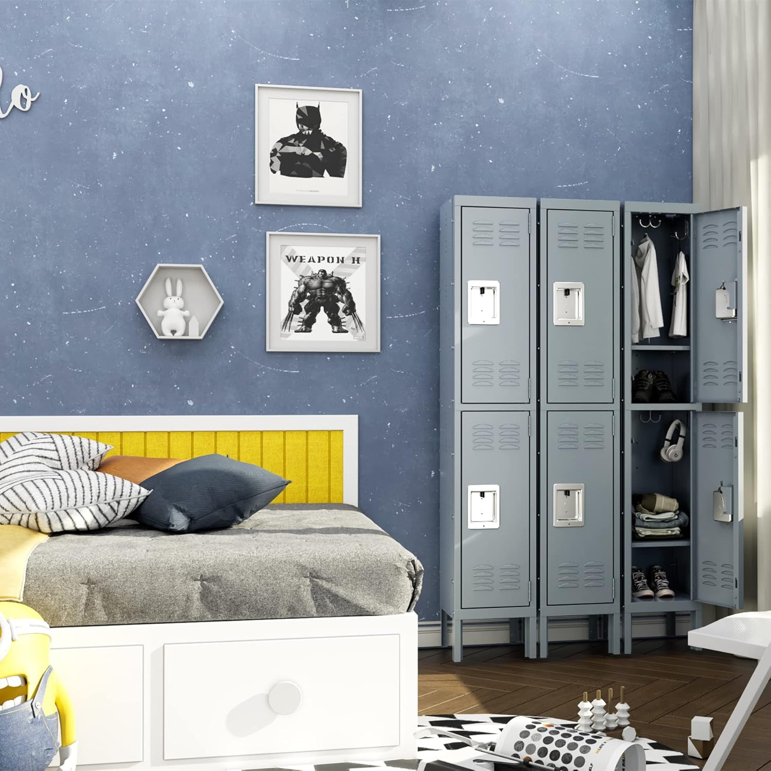 Yizosh Metal Lockers for Employees with Lock, Employees Locker Storage Cabinet with 1 Doors, Tall Steel Storage Locker for Gym, School, Office (Gray, 2 Door)