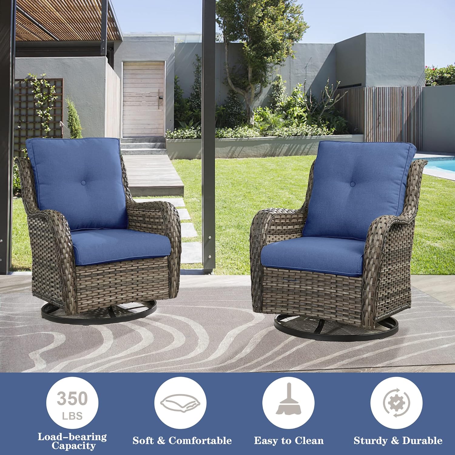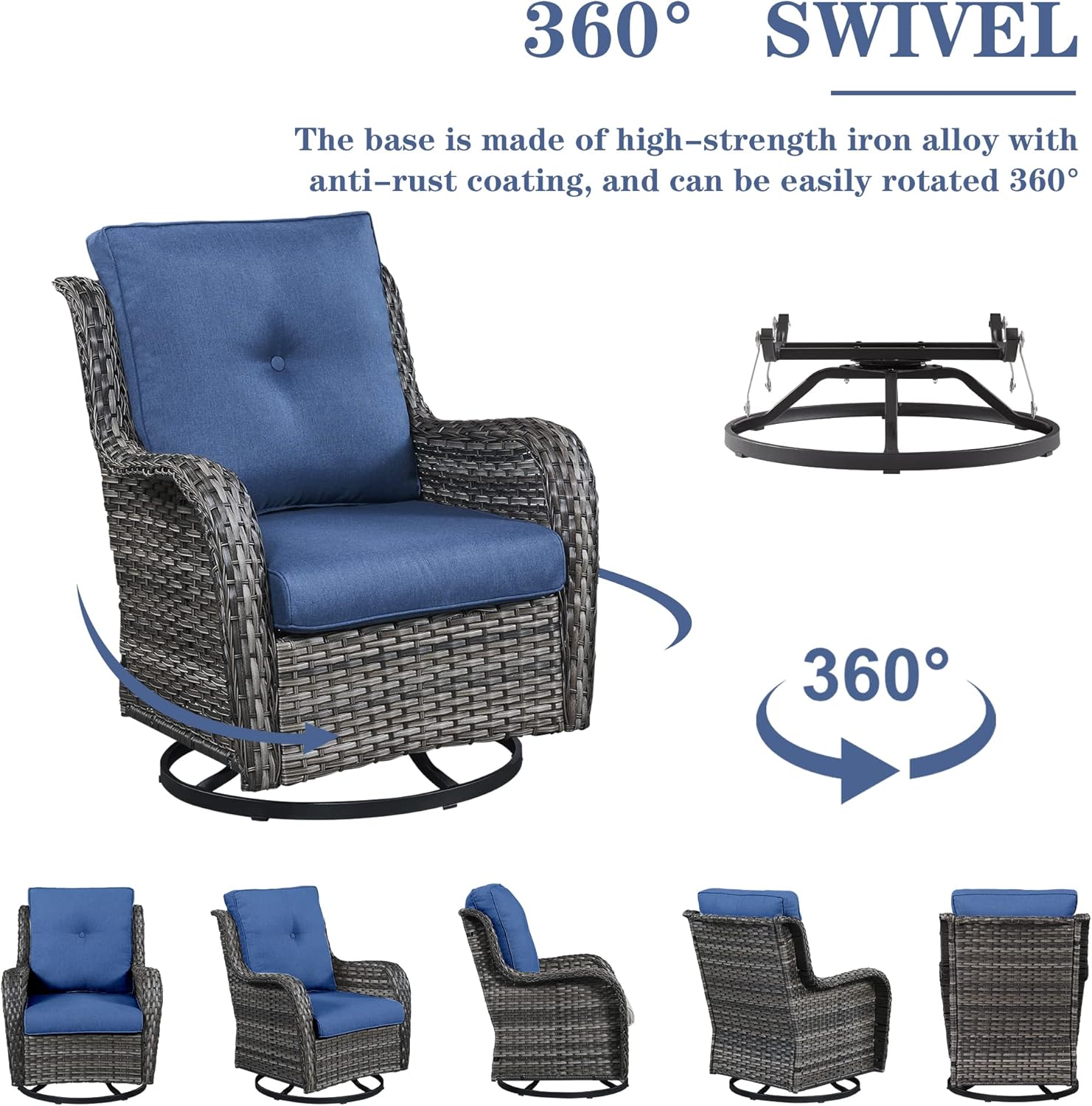 5 Piece Outdoor Patio Furniture Set - Wicker Furniture Patio Conversation Set, Outdoor Swivel Rocker Chairs with Loveseat Sofa and 2 Ottomans for Small Space, Blue Cushion