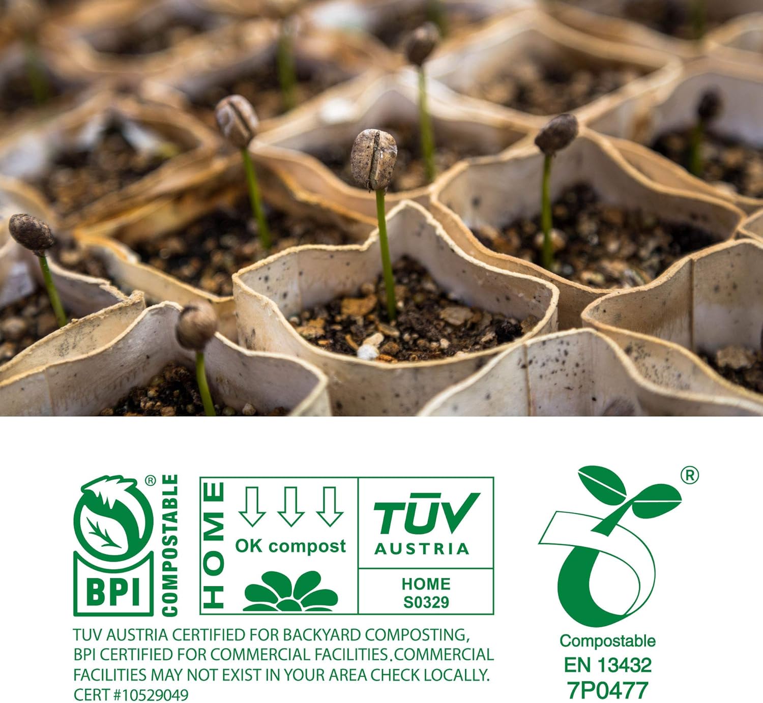 - β Moonygreen food scrap bags have acquired the highest-rated ASTM D6400, European standard EN 13432, OK Compost Home Certification and BPI certified, proving that the bags are compostable in about 90 days with home-composting as well as in industrial facilities.