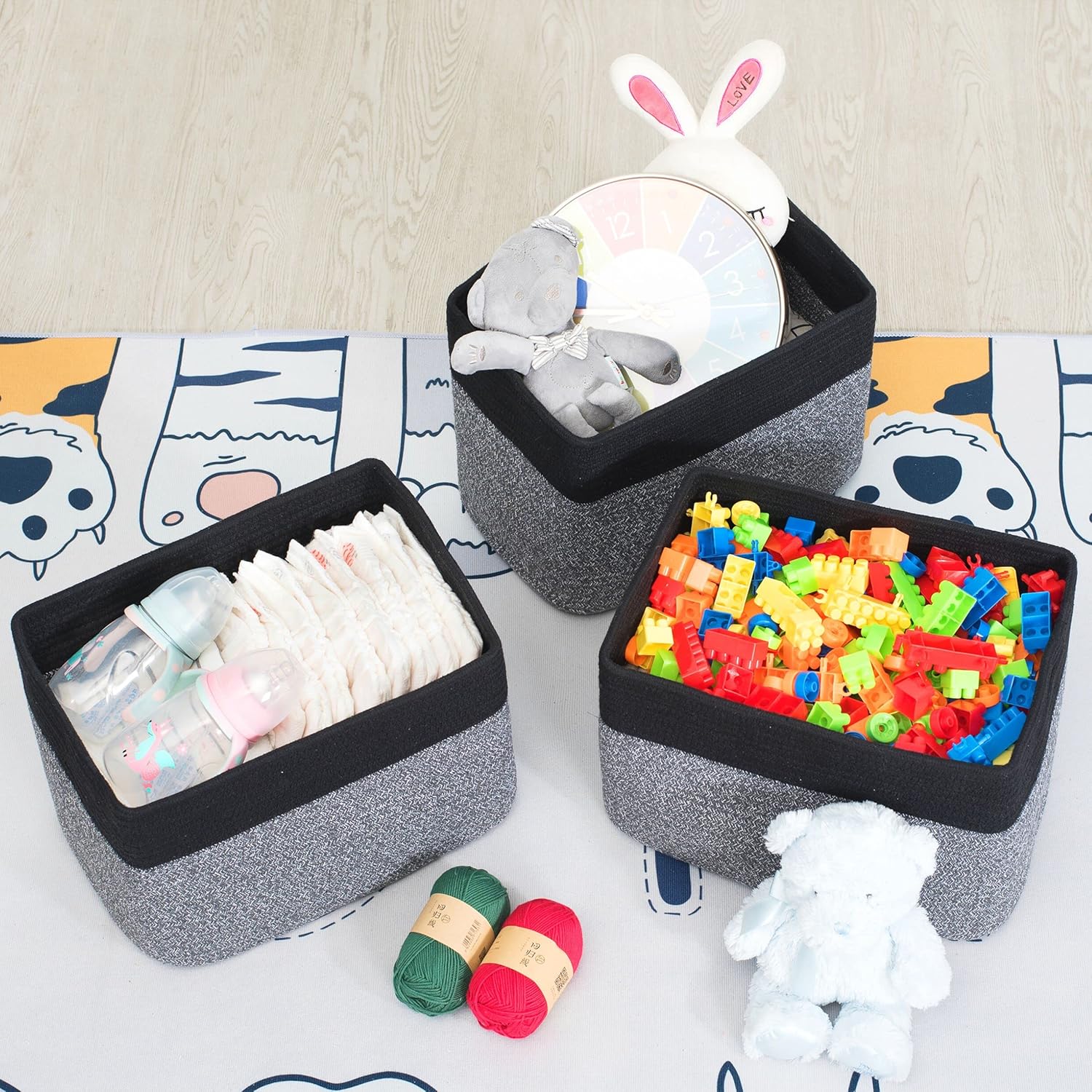 MINTWOOD Design Storage Basket for Shelves, Decorative Baskets for Organizing, Book Basket, Storage Cube Bin Box, Woven Closet Organizer, Pantry Closet and Shoe Basket, Black Grey Mix