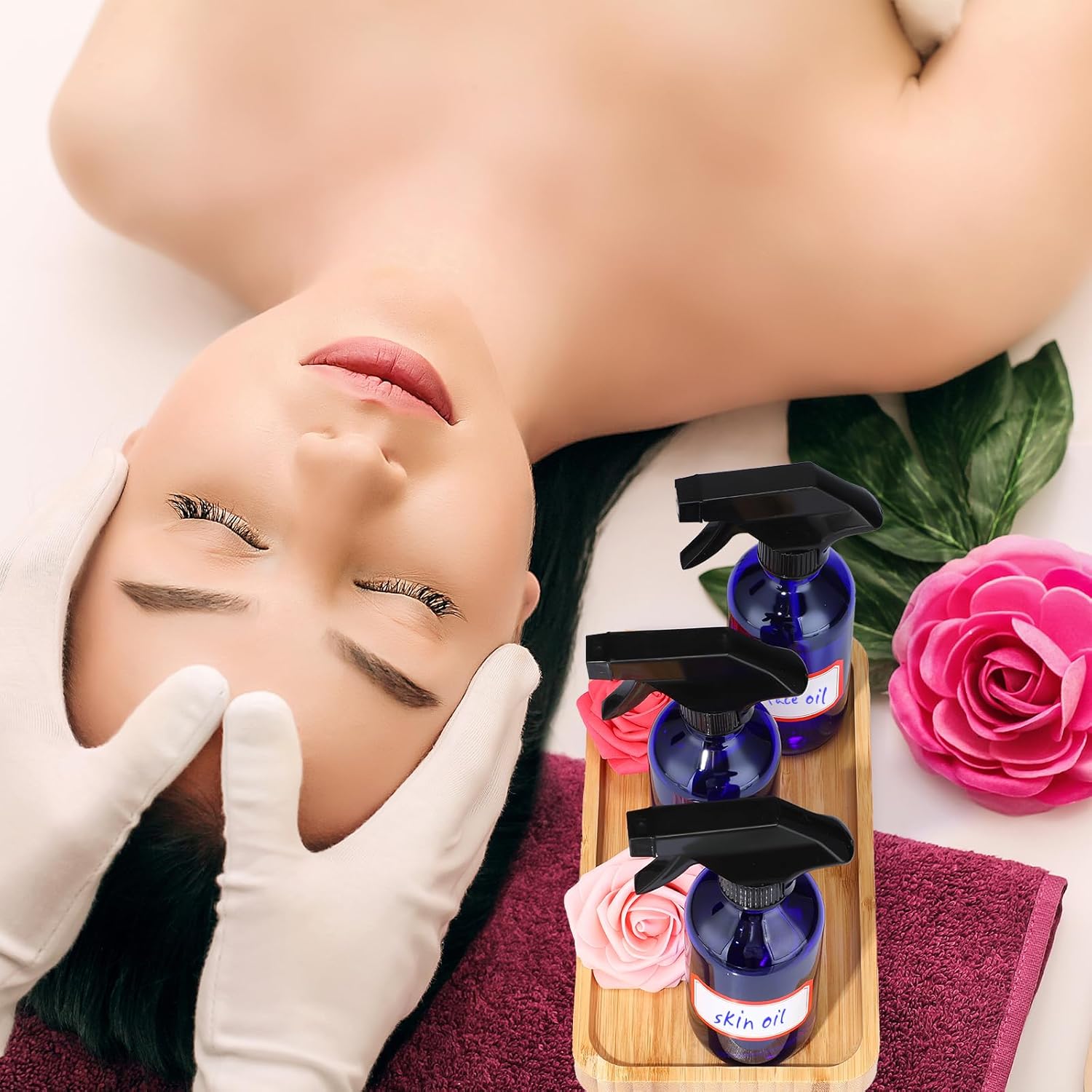 Norme 12 Pcs 8 oz Glass Spray Bottles with Funnels and Labels Refillable Cosmetic Empty Spray Bottles with Sprayer Containers for Essential Oil Cleaning Solutions(Blue,Classic)