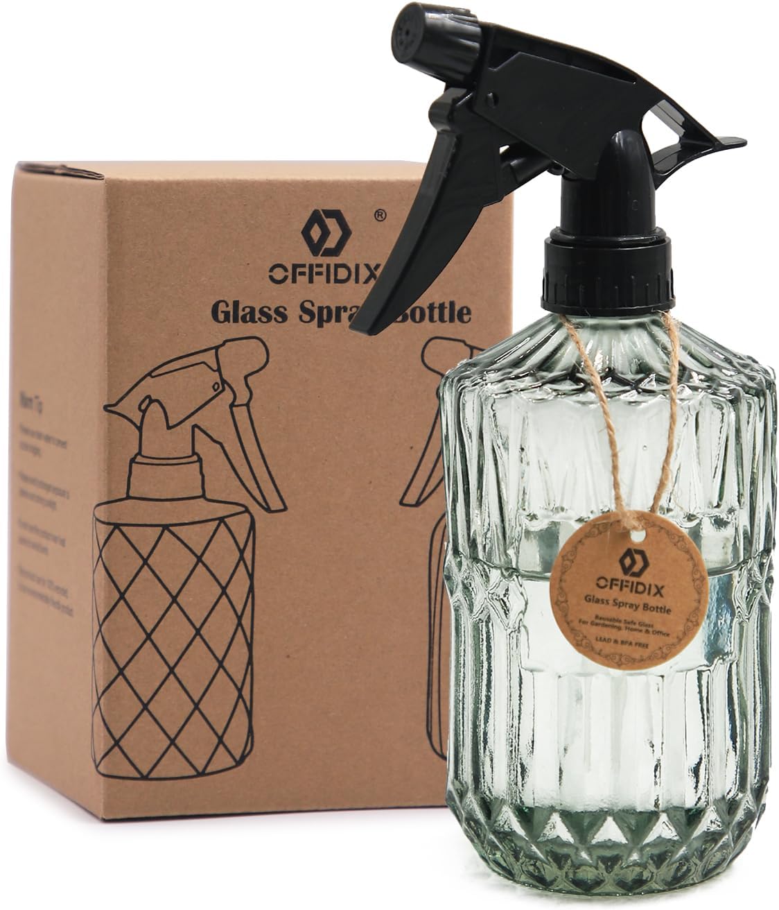 OFFIDIX Fine Mist Plant Mister,Handheld Pressure Glass Spray Bottles,0.43L/15.17oz Watering Can with Adjustable Nozzle for Outdoor Indoor Gardening and Cleaning Work(Light Green)
