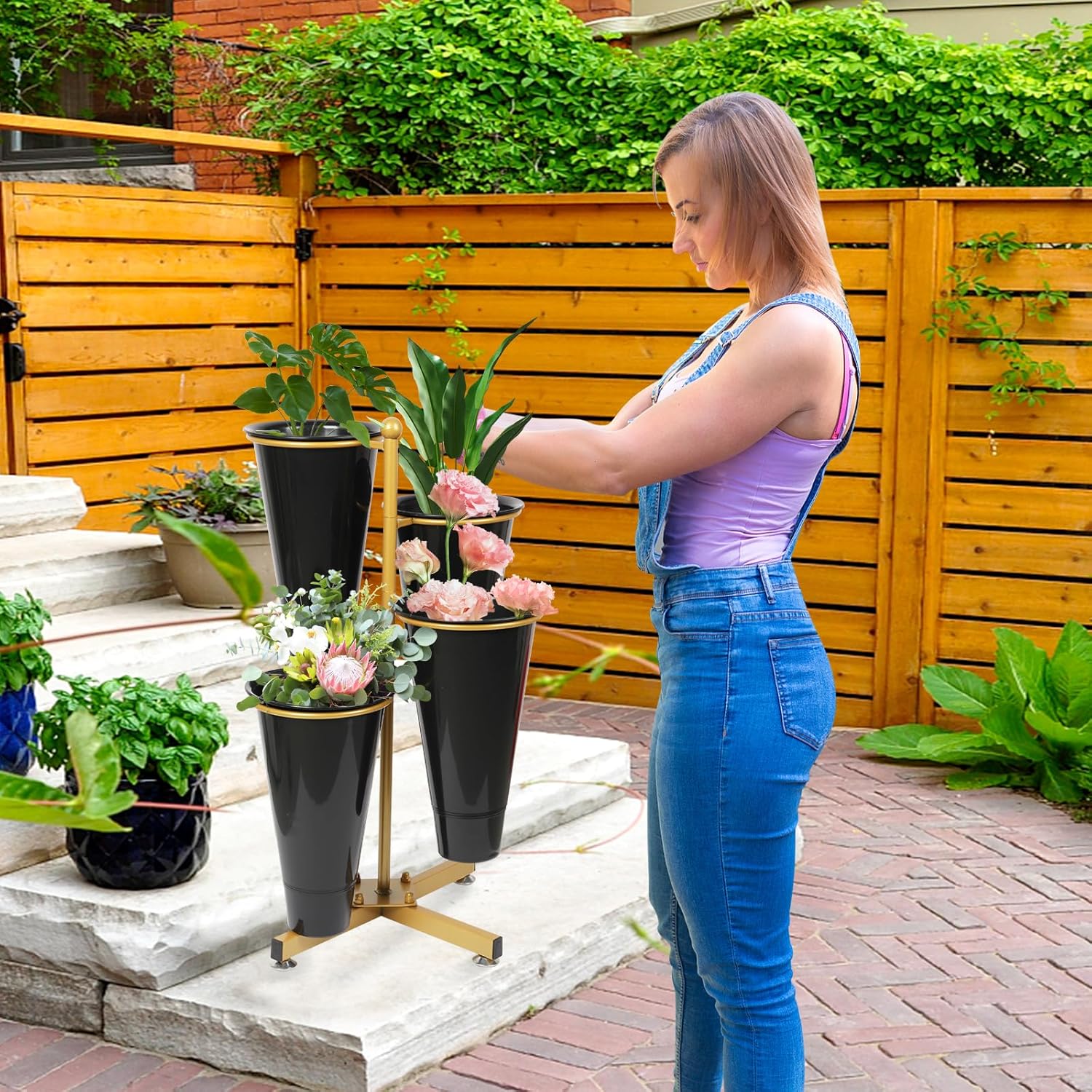 - 【Multi-function Floral Stand】- The garden floral stand Equipped with 4 flower buckets, Soil and water can be placed, Keep plants and flowers alive for a long time. It is ideal for displaying your flowers and plants in homes, patio, florists, clubs, weddings, and other places.