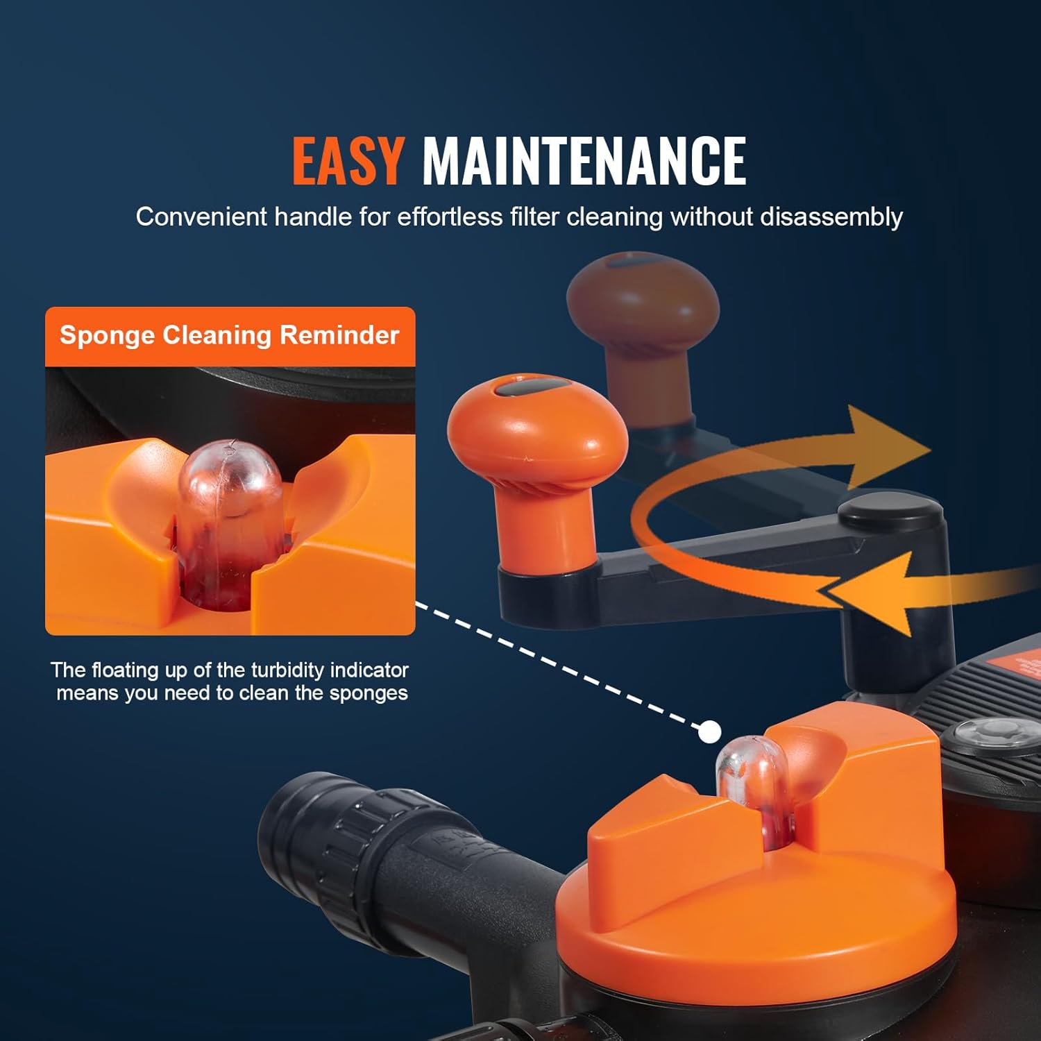 - Cleaning Made Simple: Our pond pressure bio filter sports a crank handle on top, making it easy to clean the filter with the internal cleaning rod. When the top turbidity indicator floats up, it's time to freshen up your filter sponge β no fuss, no opening the container. Plus, both sponge and bulb are replaceable for your convenience.