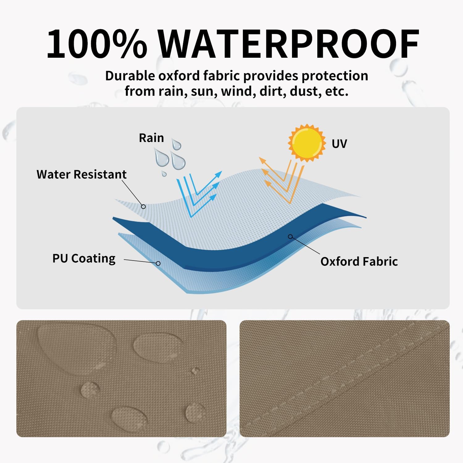 - Premium Material: The outdoor heater cover is made of oxford fabric with waterproof backing, durable and wear resistant, which can effectively protect the patio heater from dust and damage caused by the weather.