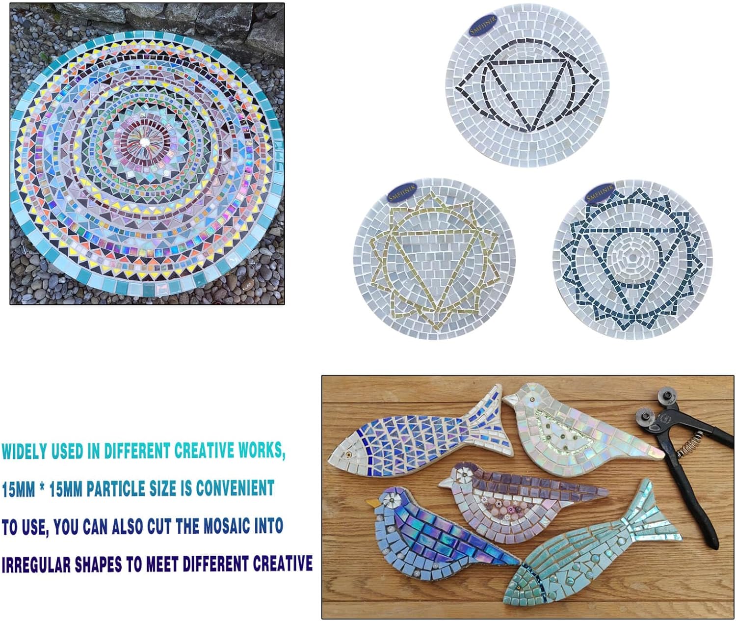 - 【EASY TO USE】Cut and shape with ease for your glass mosaic masterpieces: Each tile measures 15mm * 15mm and can be easily cut into different shapes to fit your project requirements. Let your imagination run wild as you bring your mosaic ideas to life
