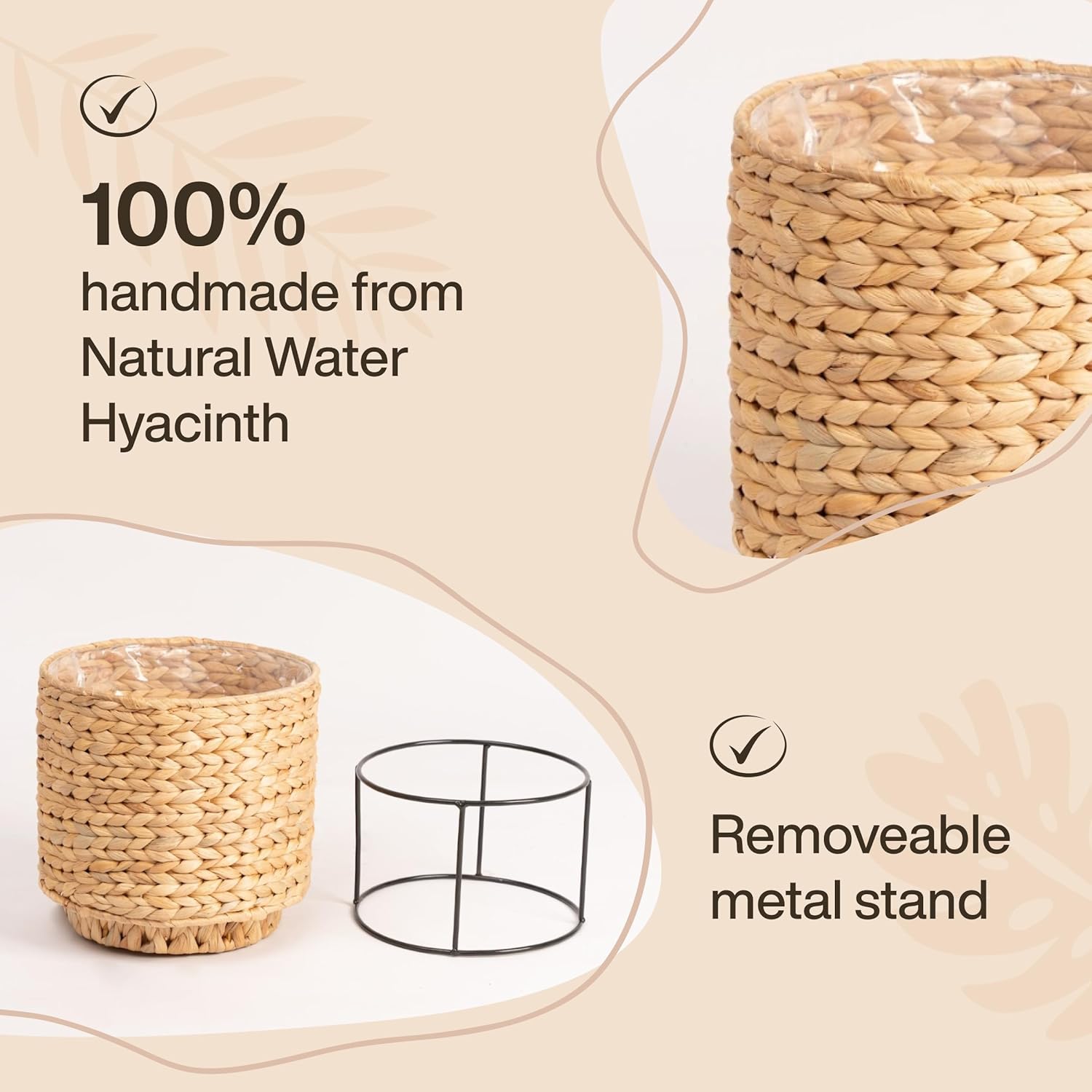 - Unique Design: Simple but elegant design, come built in with an interior plastic coating. Sweet decorative piece in any room of the house, create cozy and rustic feel. The pots come with a metal stand, which not only adds stability to the pots but also enhances their aesthetic appeal.