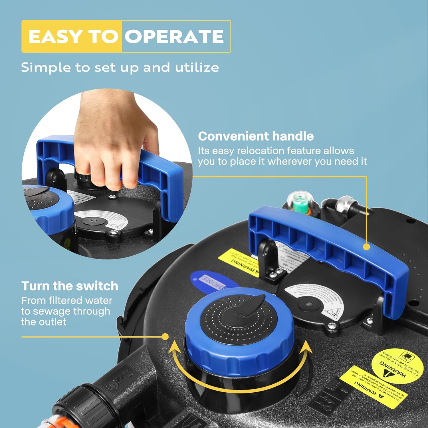 - EASY TO OPERATE - This pond filter is more than simple to set up and put into use quickly; You can turn the switch to change the function from filtered water to sewage through the outlet; The convenient handle allows for easy relocation so you can put it anywhere you need