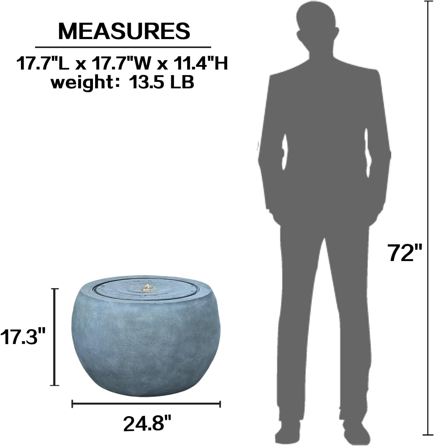 - SIZE AND ACCESSORIES - The size of the large water fountain is 25 "L x 25"W x 17.5"H.To Fit Any Outdoor Area.9.8 ft Power Cord (Extended power cord solves your space problems).Accessories Include: Garden Fountain*1, Transformer*1, Pebbles*1,Pump*1,Detailed Instructions*1.