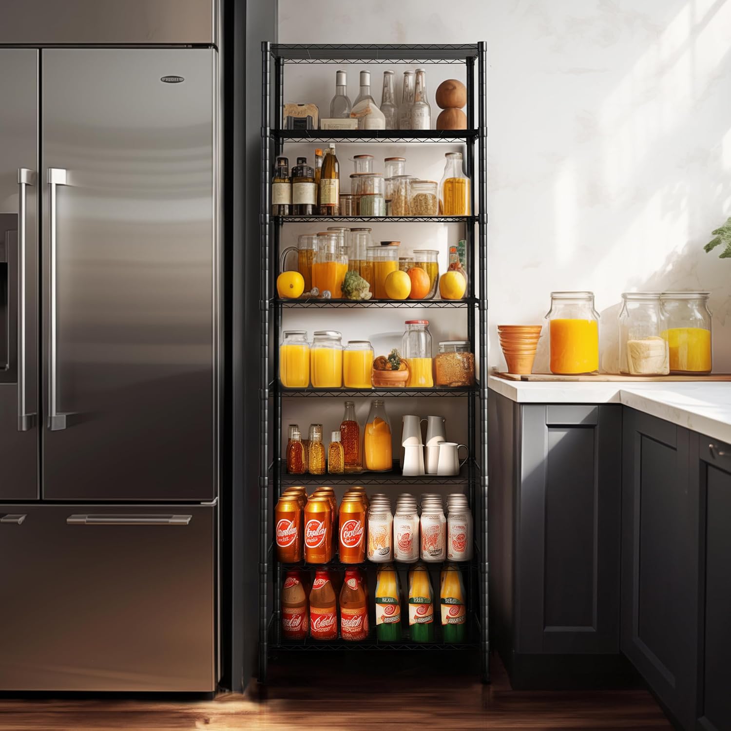 - UPDATE & OPTIMIZE - A lot of customers who bought our 6 tier wire shelving rack want to make the rack higher, so we have developed a new shelf which are 72 inches height and have 8 shelves, you can use all 8 shelves to maximize your storage space or two 4 tier units to make your storage space more flexible. Let's diversified storage and easy access in kitchen, office, garage and more.