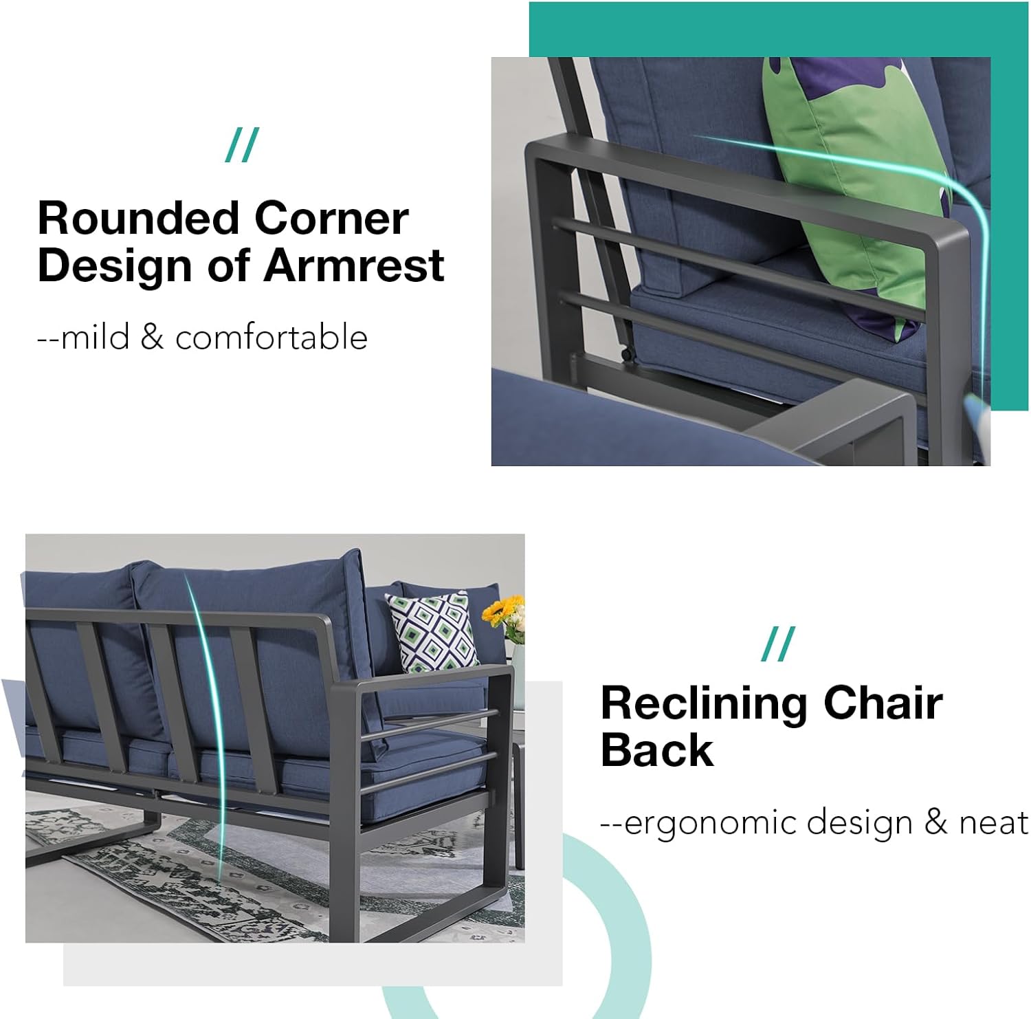- [Modern Exposed-frame Styling]: Rust-free aluminum exposed metal frames are reinforced with extra welds for added strength and powder-coated for long-lasting durability, which is fade resistant and water resistant. Rustproof screws with plastic cap of the same color are also offered on the aluminum patio furniture collection thatโs designed to stand the test of time.