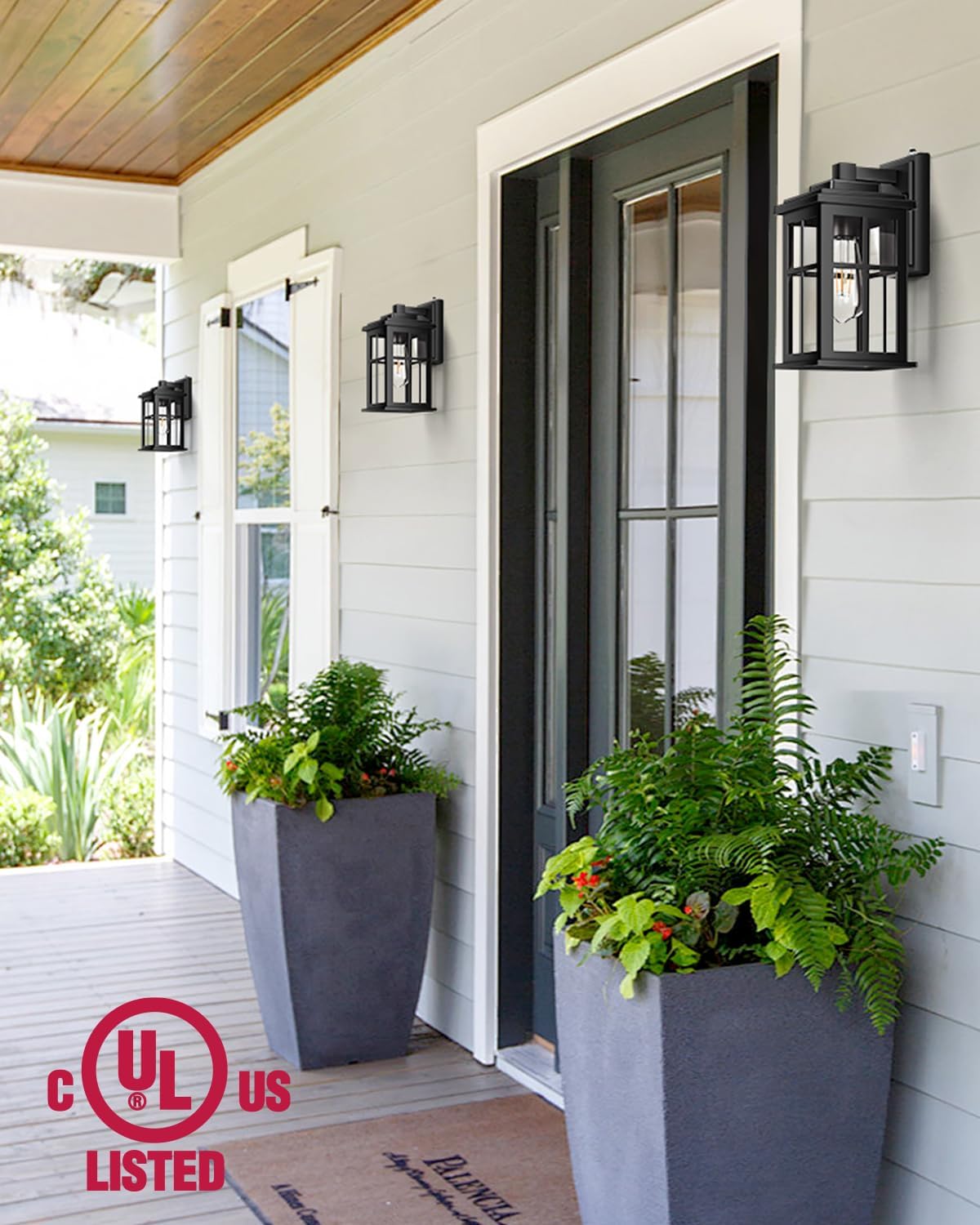 - đăHigh-Quality Construction & Tempered GlassăOur outside lights for house feature a sturdy die-cast Aluminum frame with a black matte finish, ensuring superior craftsmanship. These waterproof, anti-rustic, and weather-resistant wall sconces are built to last. Unlike fragile glass panels, our outdoor wall lights for house are equipped with high-tempered seeded bubble glass that is strong and durable. The seeded bubble glass enhances the light, creating a warm and inviting atmosphere in your house.