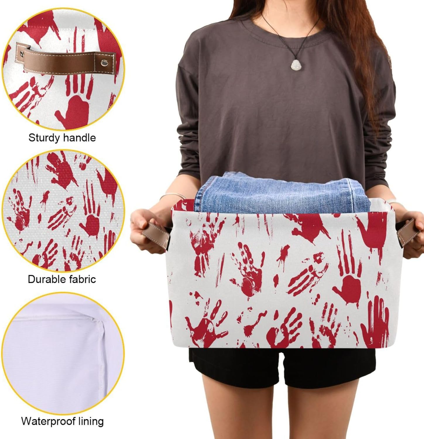 Skull Hand Rectangular Storage Basket Organizer Bin Shelf Baskets For Clothes Gifts For Home Office Dorm