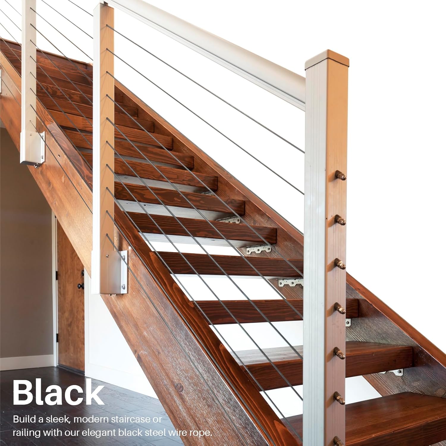- Versatile Use: Perfect for indoor or outdoor use, our black wire rope can be used for staircases, balconies, decks, and more, providing a secure and attractive solution wherever needed.