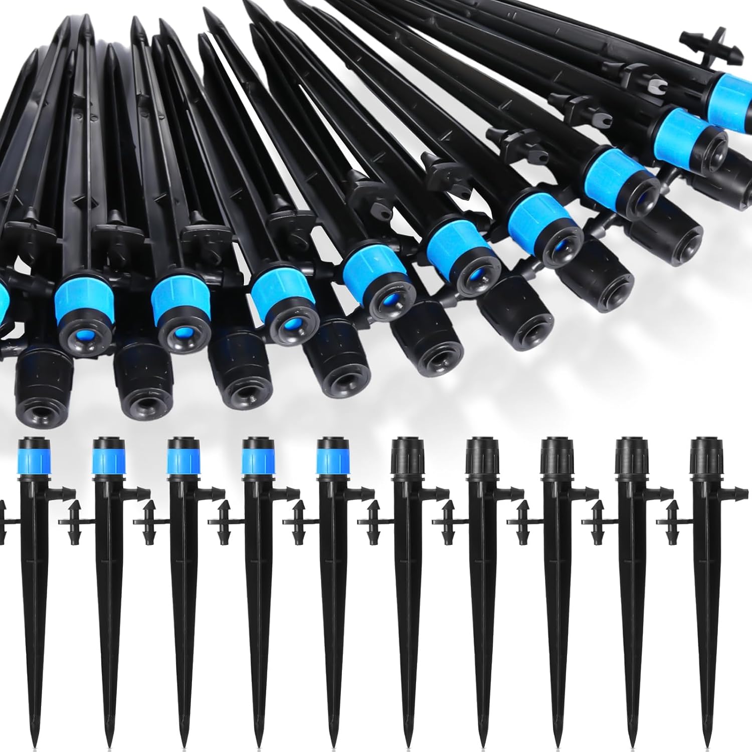 80 Pcs Drip Irrigation Emitters with Adjustable 360 Degree Water Flow Drippers for 1/4 Tubing Sprayer on 5.5 Arrow Stake for Garden System(Blue, Black,Double Barbed)