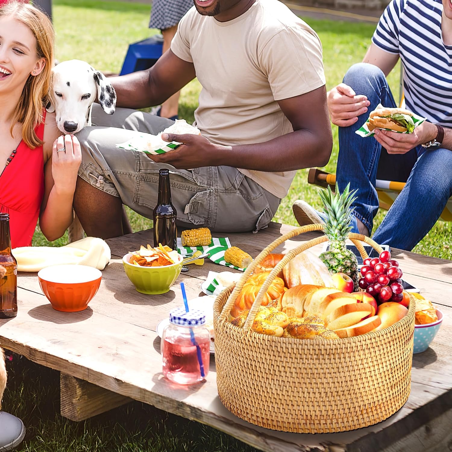 - 〖DECORATIVE AND LARGE SPACE 〗Rattan picnic basket, The natrual vine color can match many decorating style, from traditional to modern, from elegant to casual. Choosing a high-quality and exquisite basket is important in creating a warm and joyful vacation. The picnic baskets are stackable with large space can be used for various purposes, including storage of food, drinks, candy,flowers, accessories, fruits, vegetables, snacks, and more.