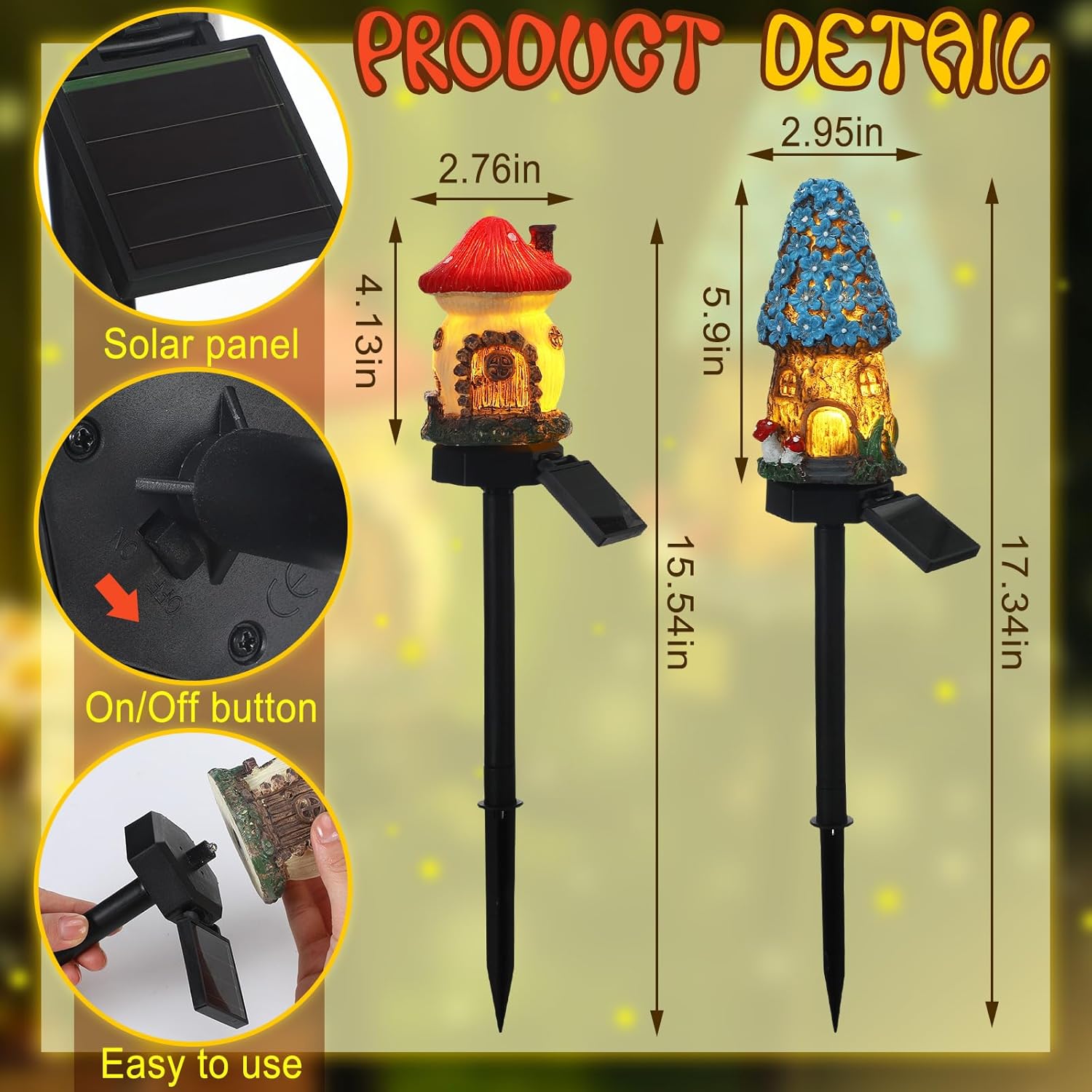 - Material Quality: the solar outdoor mushroom statues are crafted from quality resin, ensuring longevity and robustness; Coupled with its vibrant multicolor design, reliable construction makes it an attractive addition to garden