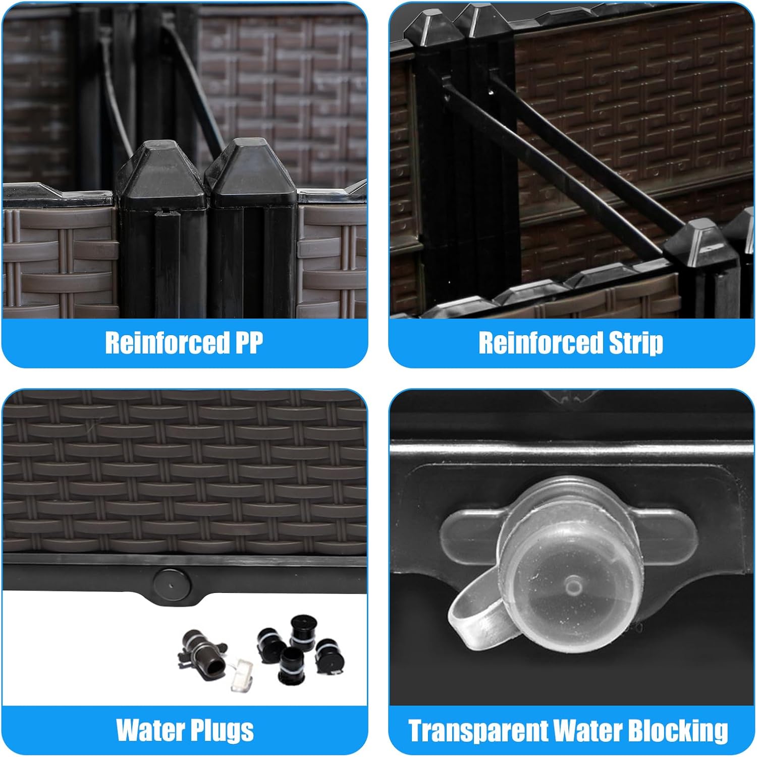 - Made of strengthened PP material that is eco-friendly, weather resistant, and sturdy.