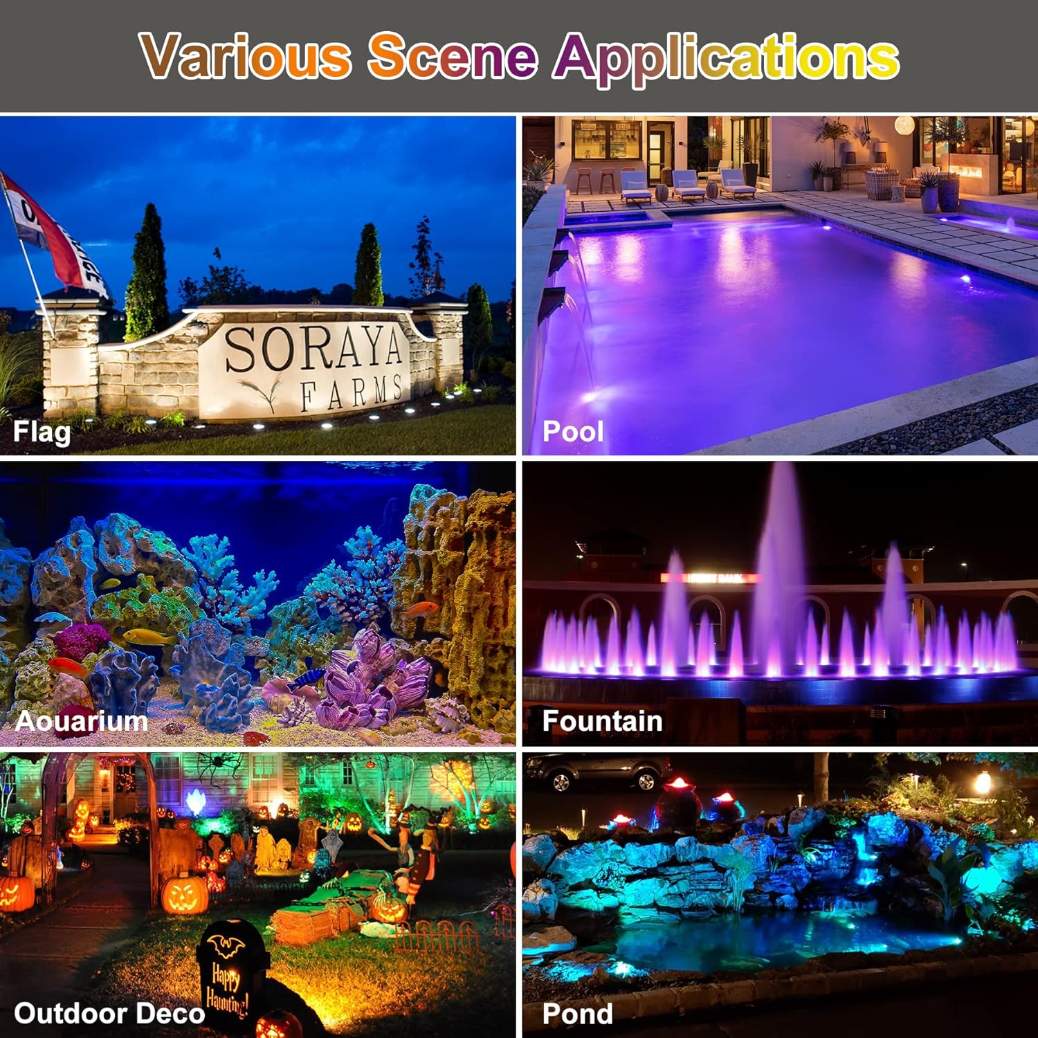 - 2 Types of Installation: Complete with accessories, the base can be fixed in the water, used as underwater lights, can also be installed on the ground or wall, used as landscape lights, either way, perfect for pool, pond, garden, path road, and other decoration & lighting