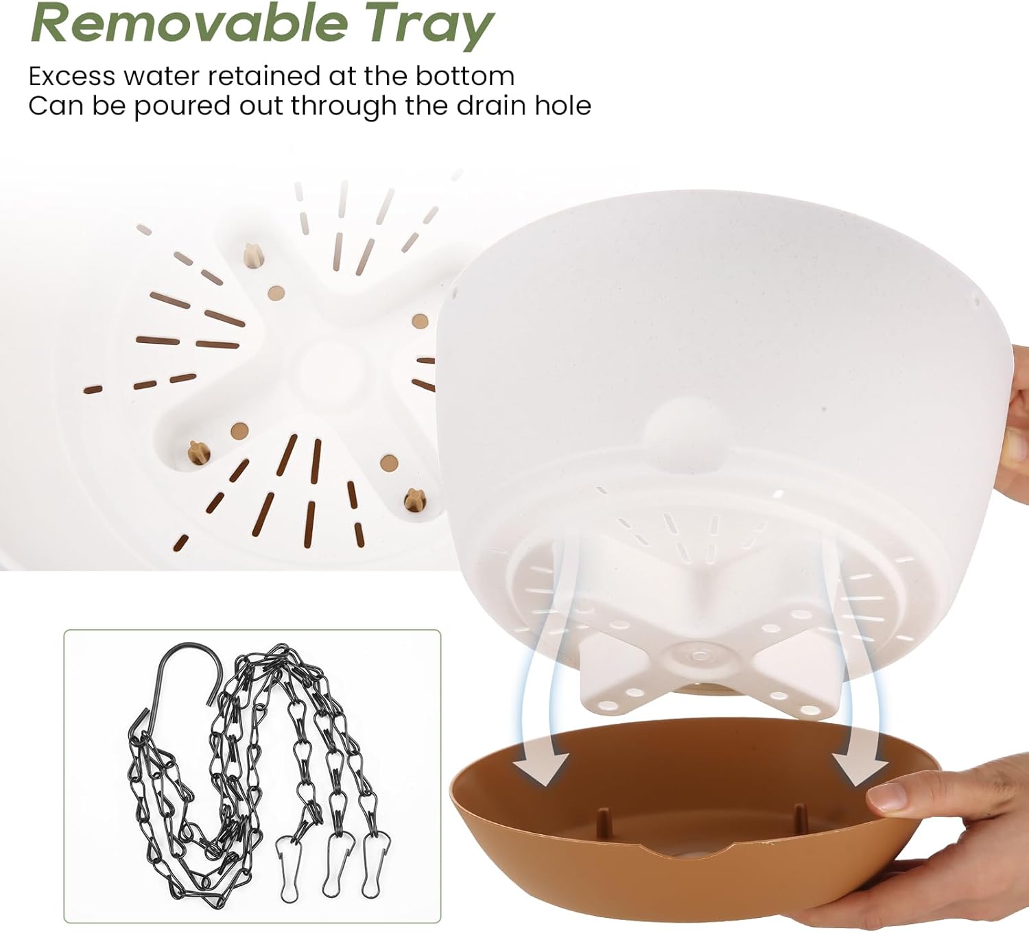- Removable Trays - Tray and flowerpot can be easily separated, and the bottom of flowerpot is porous design, which is convenient for ventilation and drainage, So that there is enough air circulation in the soil to prevent root rot and keep the soil moist.