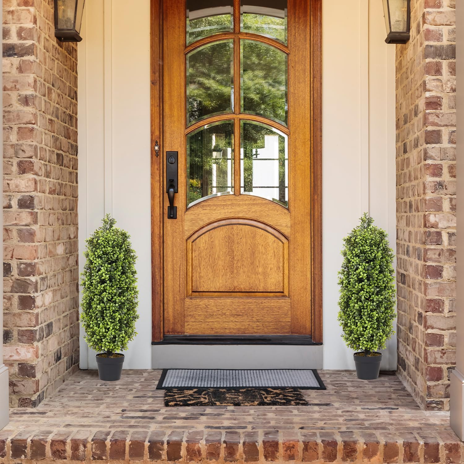 3ft Artificial Boxwood Topiary Trees (Set of 2) - UV Resistant Faux Plants for Outdoor/Indoor, Realistic 36in Fake Bushes and Shrubs for Front Porch, Planter, Patio - Low Maintenance & Evergreen