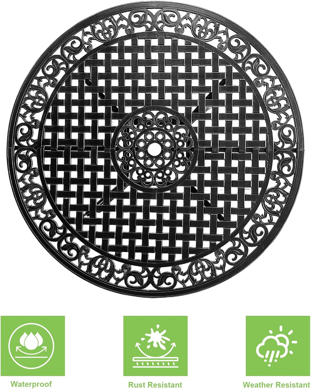 - Umbrella Hole Design: There's a 2.36 inch umbrella hole in the center of patio table which fits a patio umbrella (not included) for convenient shade and cool relaxation.