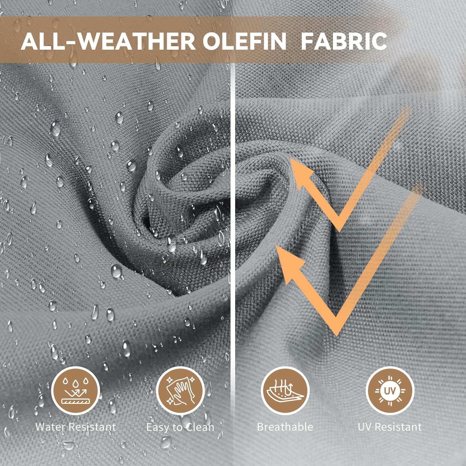 - Durable and Easy-to-Maintain Fabric: The cushions are crafted from Olefin fabric, offering 800 hours of UV protection and water resistance, making this outdoor couch ideal for all-weather use. The covers are removable and washable, featuring hidden zippers for easy cleaning. Enjoy a low-maintenance patio set that stays fresh and inviting throughout the seasons