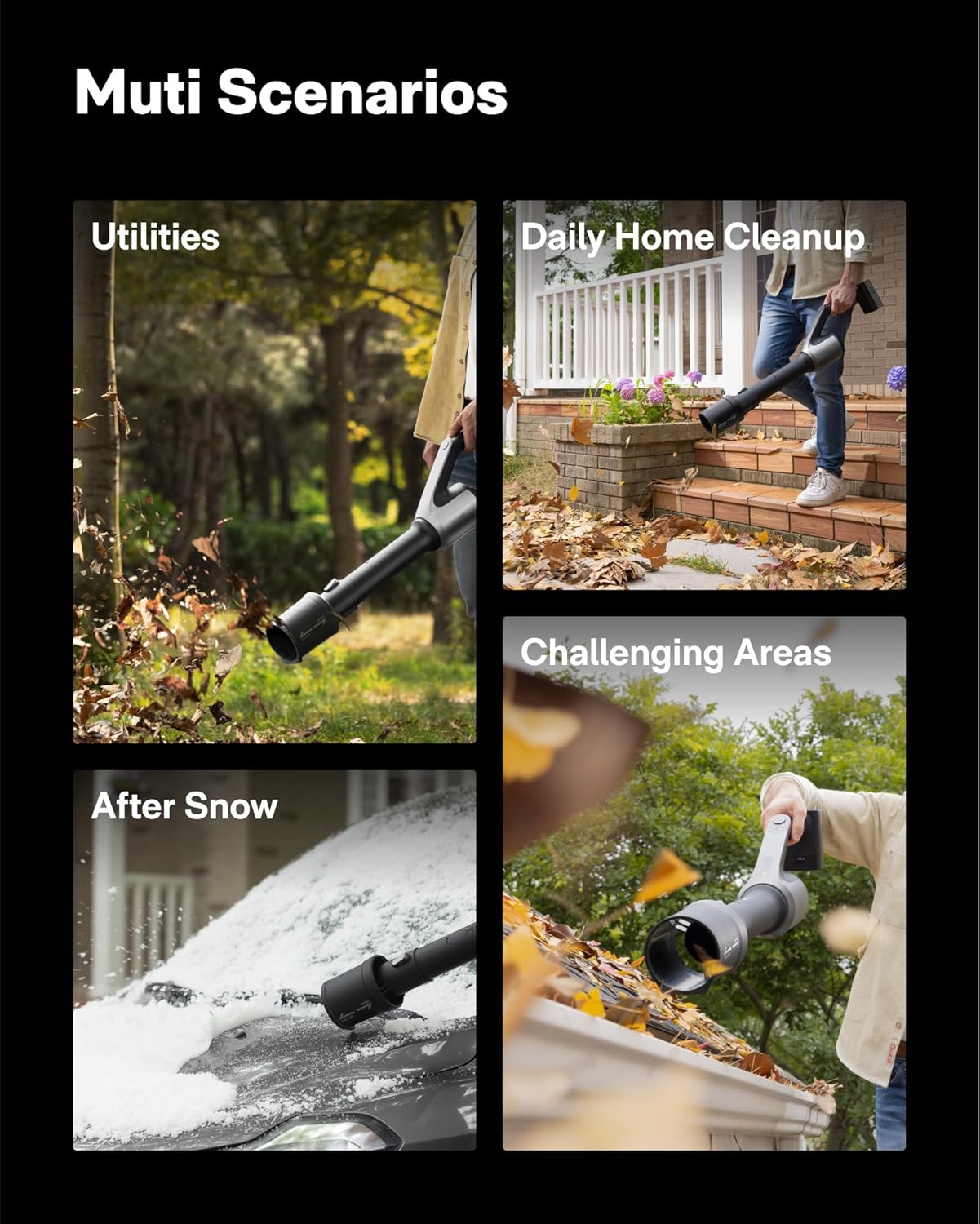 - RETRACTABLE SIPHON TUBE: Easily switch between high-air-volume and high-speed modes via the adjustable siphon tube. The HOTO leaf blower effortlessly handles challenges from large piles of leaves and light snow to wet leaves, gutter dust and even stubborn debris