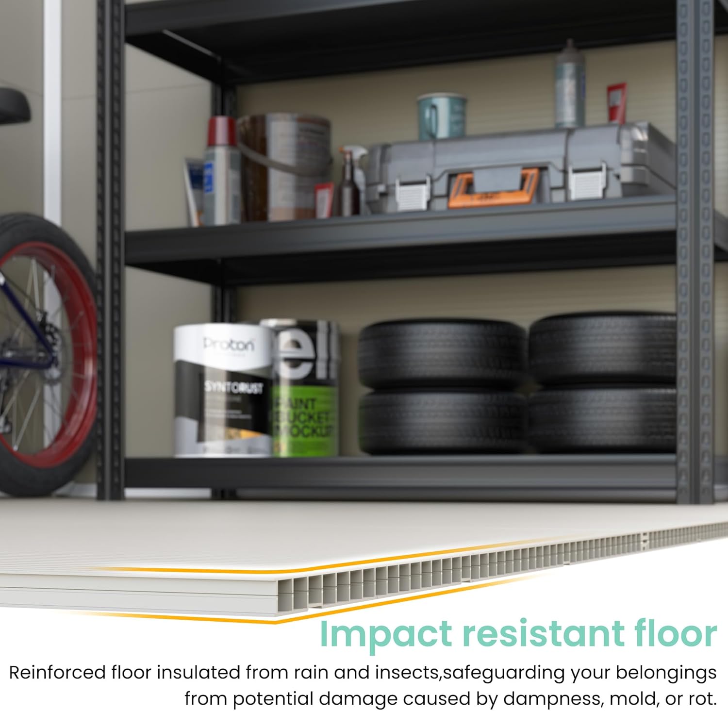 - RECYCLABLE RESIN MATERIAL: Our storage shed is crafted with 12 MM premium polypropylene resin plastic, which is recyclable. Resin shed is corrosion-resistant, waterproof, rustproof and with UV protection for more than 8000 hours, less bending and puncturing, worry-free for use in all weather conditions. It can be used daily for five years without fading