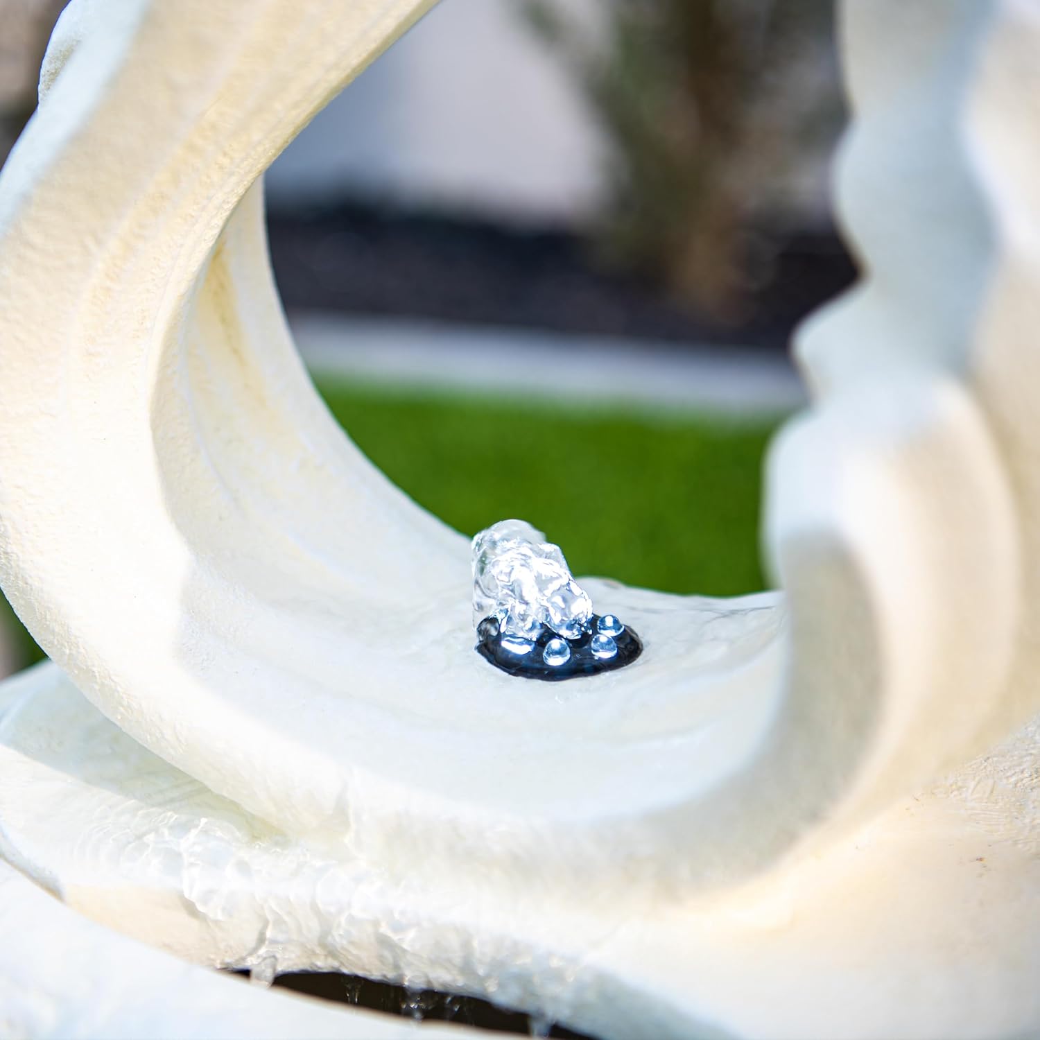 - DURABLE MATERIAL: Made from high-quality resin and fiberglass, this white water fountain is designed for durability and long-lasting use; the material mimics the look of natural stone, providing a rustic but yet modern sculptural aesthetic without the heavy weight or maintenance of real stone, with simple connection LED lights to highlight and illuminate the design.