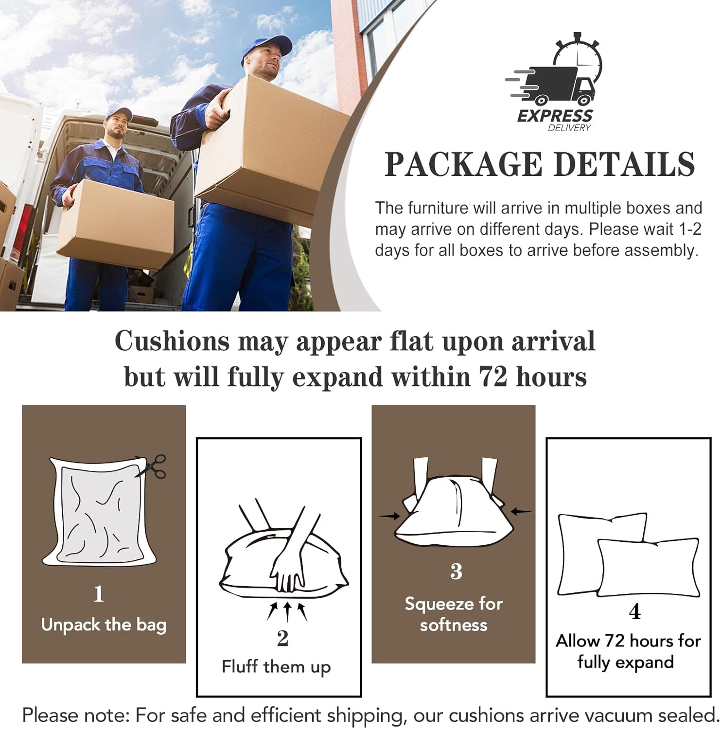 - Size : 5 PCS - Sofa Set + Coffee Table + Side Table