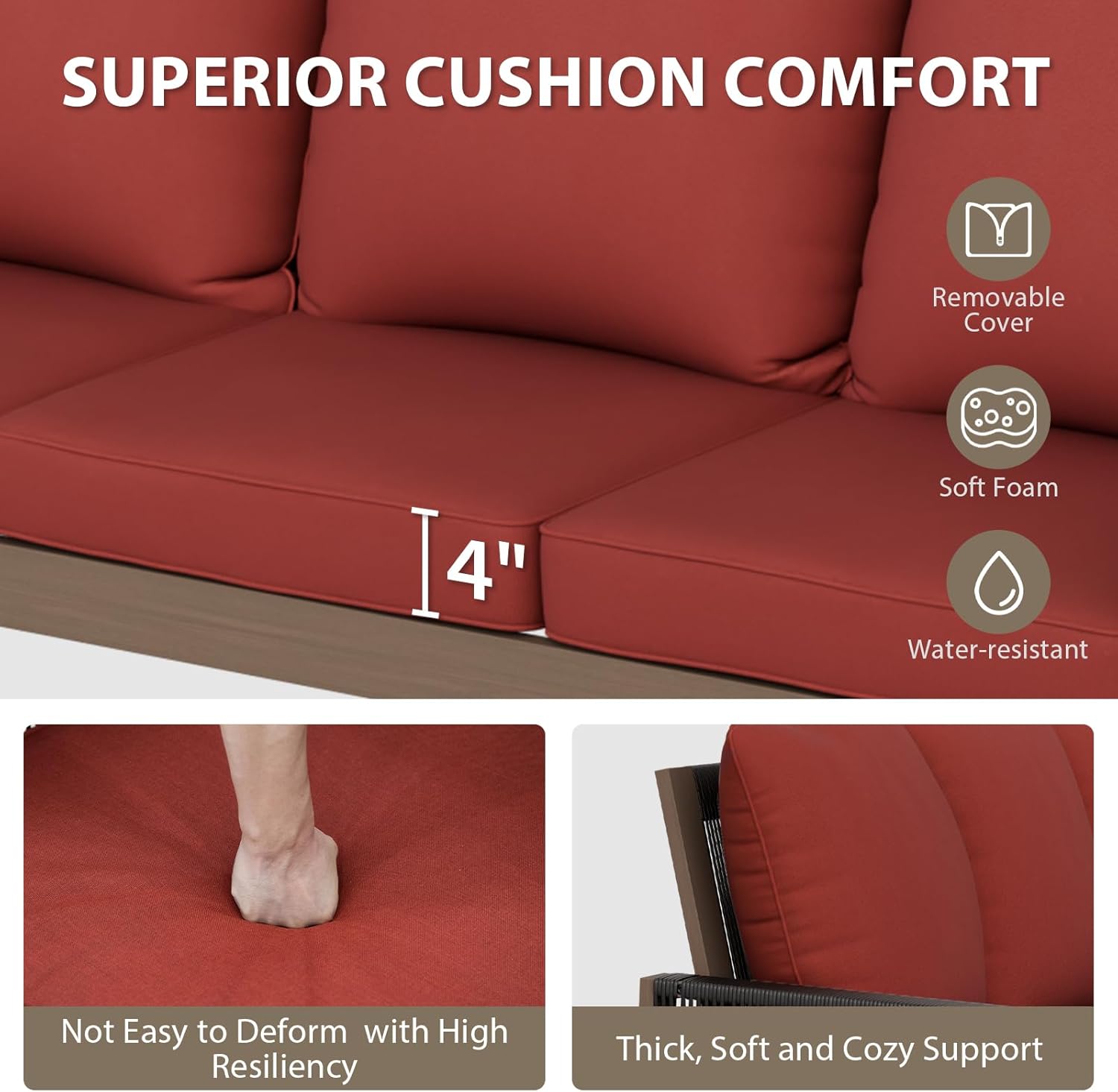 - SUPERIOR CUSHION COMFORT: Generously padded with soft foam and wrapped in premium UV resistant Olefin fabric, the cushions provide a cozy, supportive feel for hours of relaxation. The covers are equipped with a convenient zipper closure for easy removal, making cleaning and maintenance a breeze.