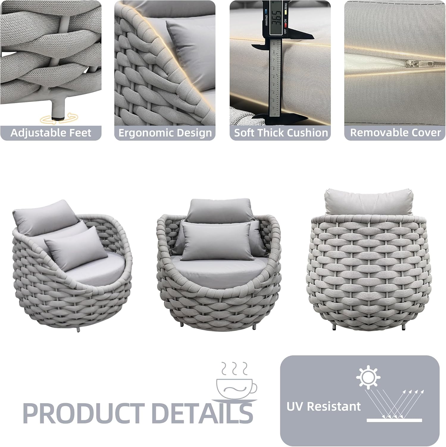 - Sturdy & Durable - Quick drying woven rope outdoor furniture with high quality aluminum alloy,no rust,no deformation,hand woven textilene rope are strong enough to withstand all weather variations.Outdoor patio furniture set cushions balance well with sturdy frame.