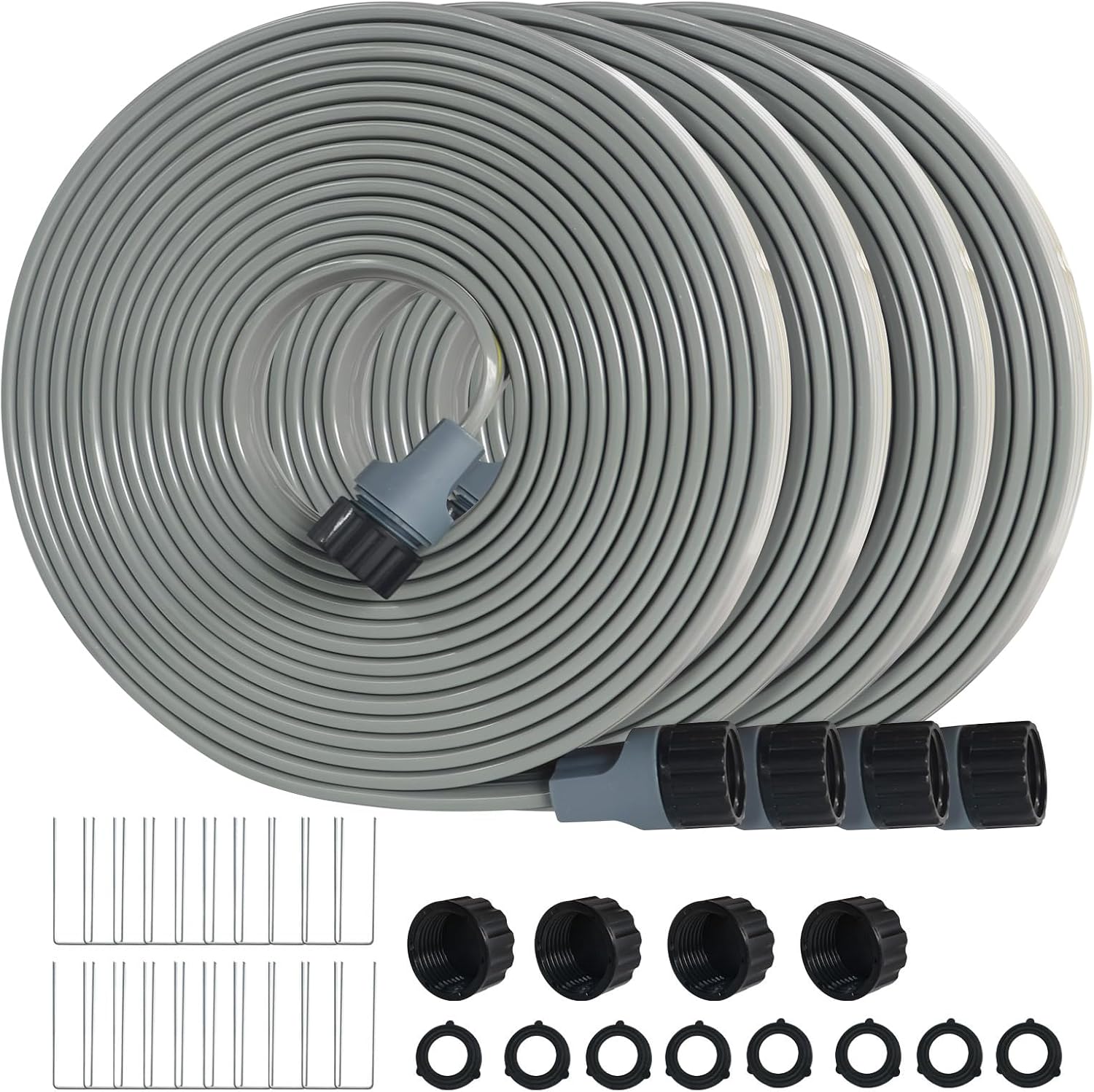 Hopegiver Sprinkler Soaker Hose 10ft 4-Pack Yard Sprinkler Hose for Lawn Water Saving with Stakes, Drip Irrigation Hoses Garden Watering System(Grey,10ft 4-Pack)